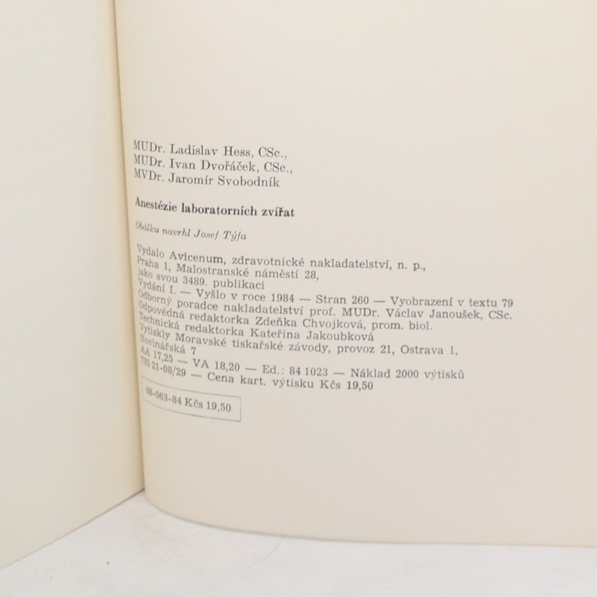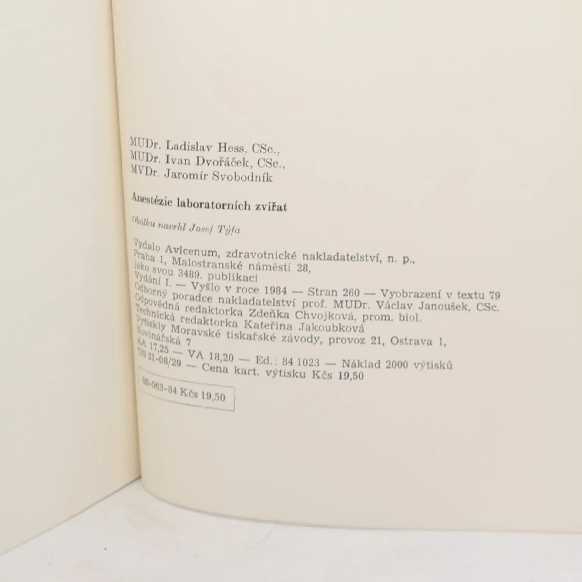 Anestézie laboratorních zvířat, Ladislav Hess, Ivan Dvořáček, Jaromír Svobodník