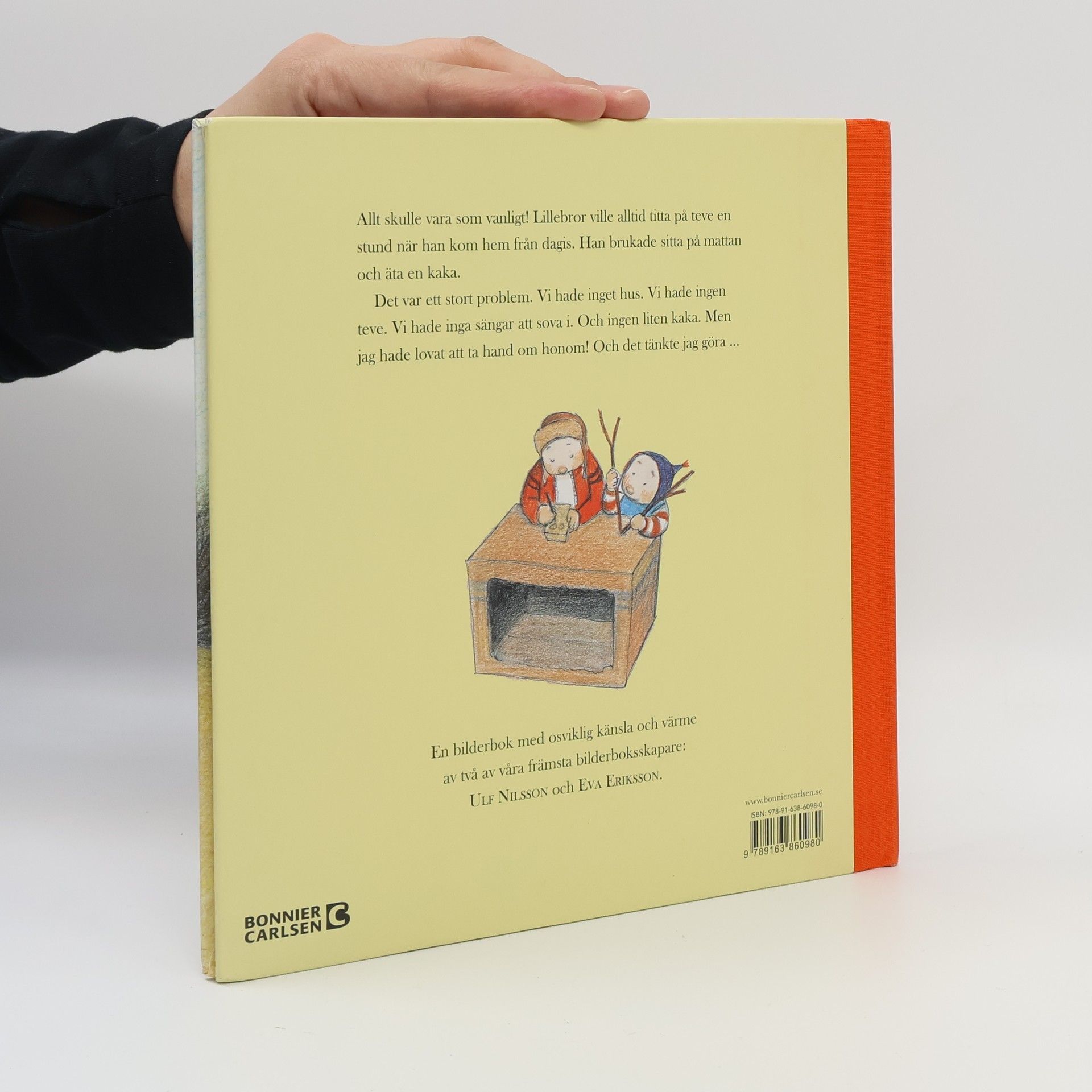 Billedbog. Storebror kan ikke forstå at han ikke bliver hentet i børnehaven. Klokken er jo det den plejer at være! Er der sket noget med mor og far? Storebror henter lillebror i vuggestuen, for alt skal jo være som det plejer at være. Men er det nu det?.