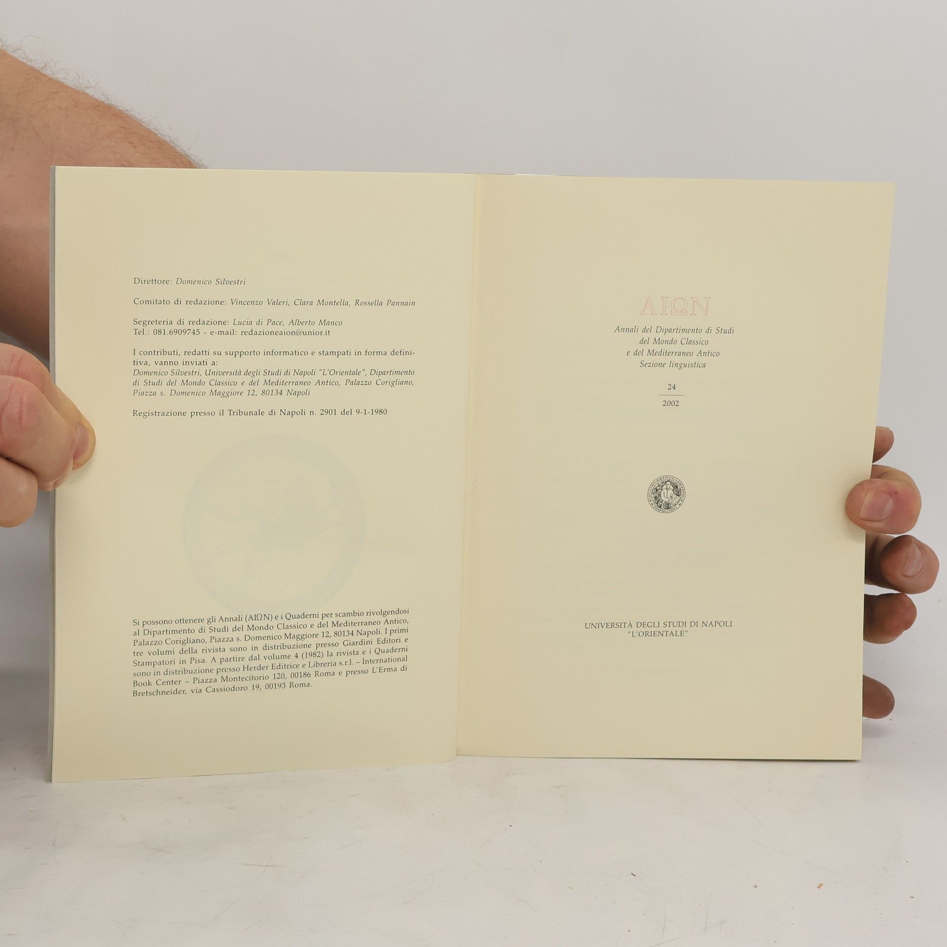 Annali del Dipartimento di Studi del Mondo Classico e del Mediterraneo Antico Sezione linguistica 24/2002, AA.VV.