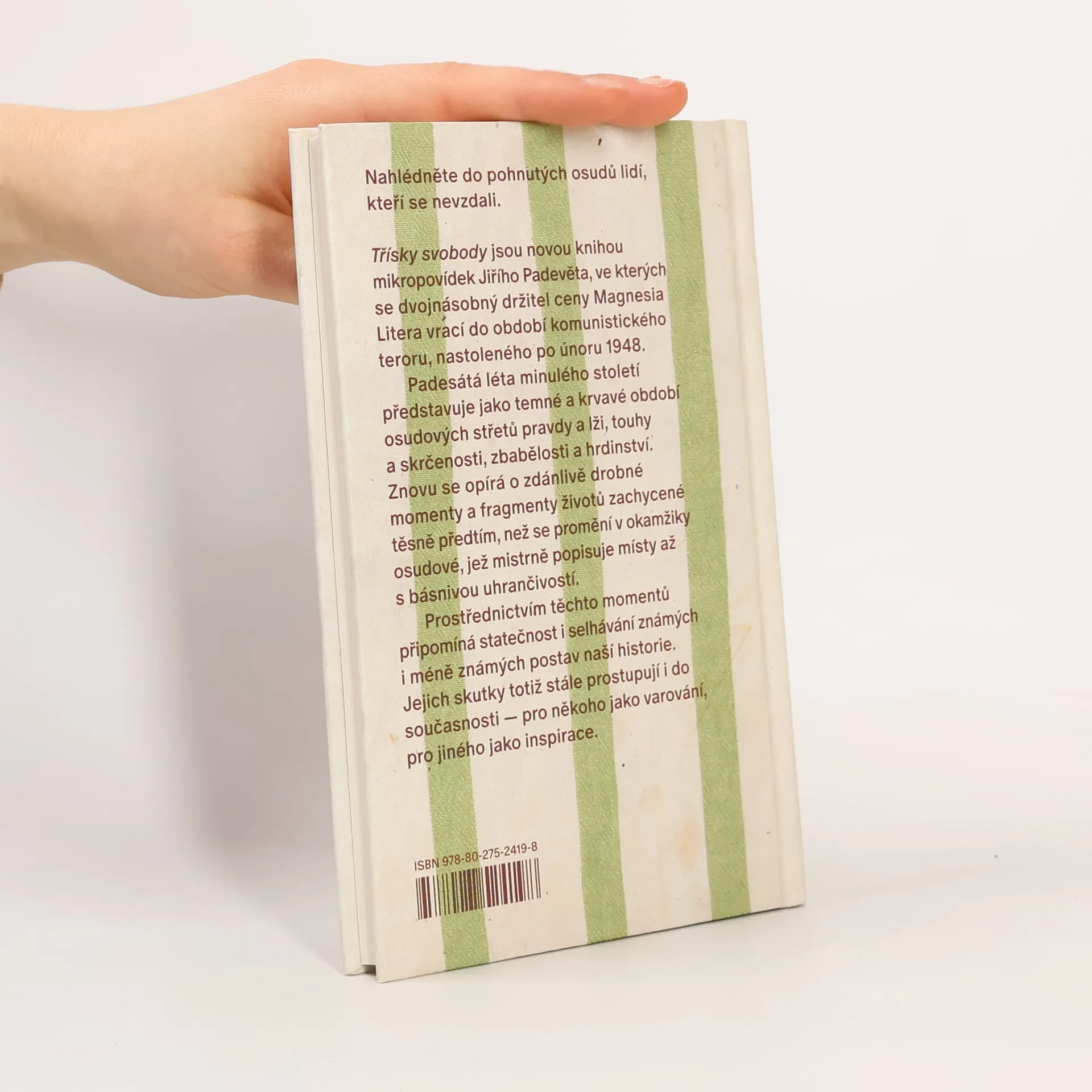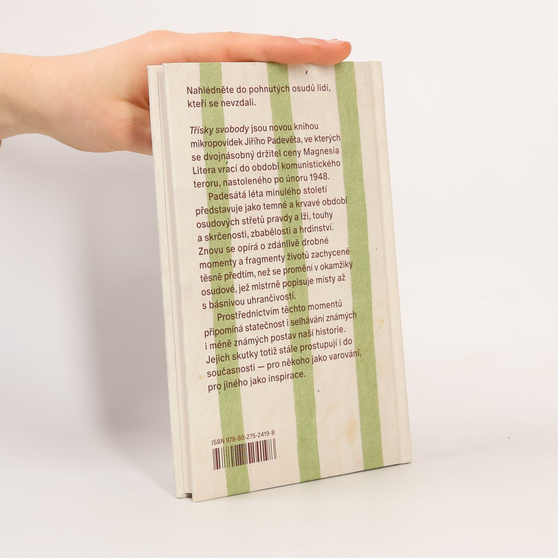 Nahlédněte do pohnutých osudů lidí, kteří se zapojili do boje proti komunistickému režimu. Třísky svobody jsou novou knihou mikropovídek Jiřího Padevěta, ve kterých se spisovatel, knihkupec, nakladatel a dvojnásobný držitel ceny Magnesia Litera vrací do období komunistického teroru, nastoleného po únoru 1948. Padesátá léta minulého století představuje jako temné a krvavé období osudových střetů pravdy a lži, touhy a skrčenosti, jako dobu, která proti sobě stavěla kladiva a pistole, myšlenky a ideologie a která zrůdně pošlapala a potrestala i ten nejmenší sen o svobodě. Znovu se přitom opírá o zdánlivě drobné momenty a fragmenty životů zachycené těsně předtím, než se promění v okamžiky osudové, které mistrně popisuje místy až s básnivou uhrančivostí. Jejich prostřednictvím připomíná hrdinství i selhávání známých i méně známých postav naší historie. Jejich skutky totiž stále prostupují i do současnosti — pro někoho jako varování, pro někoho jako inspirace.