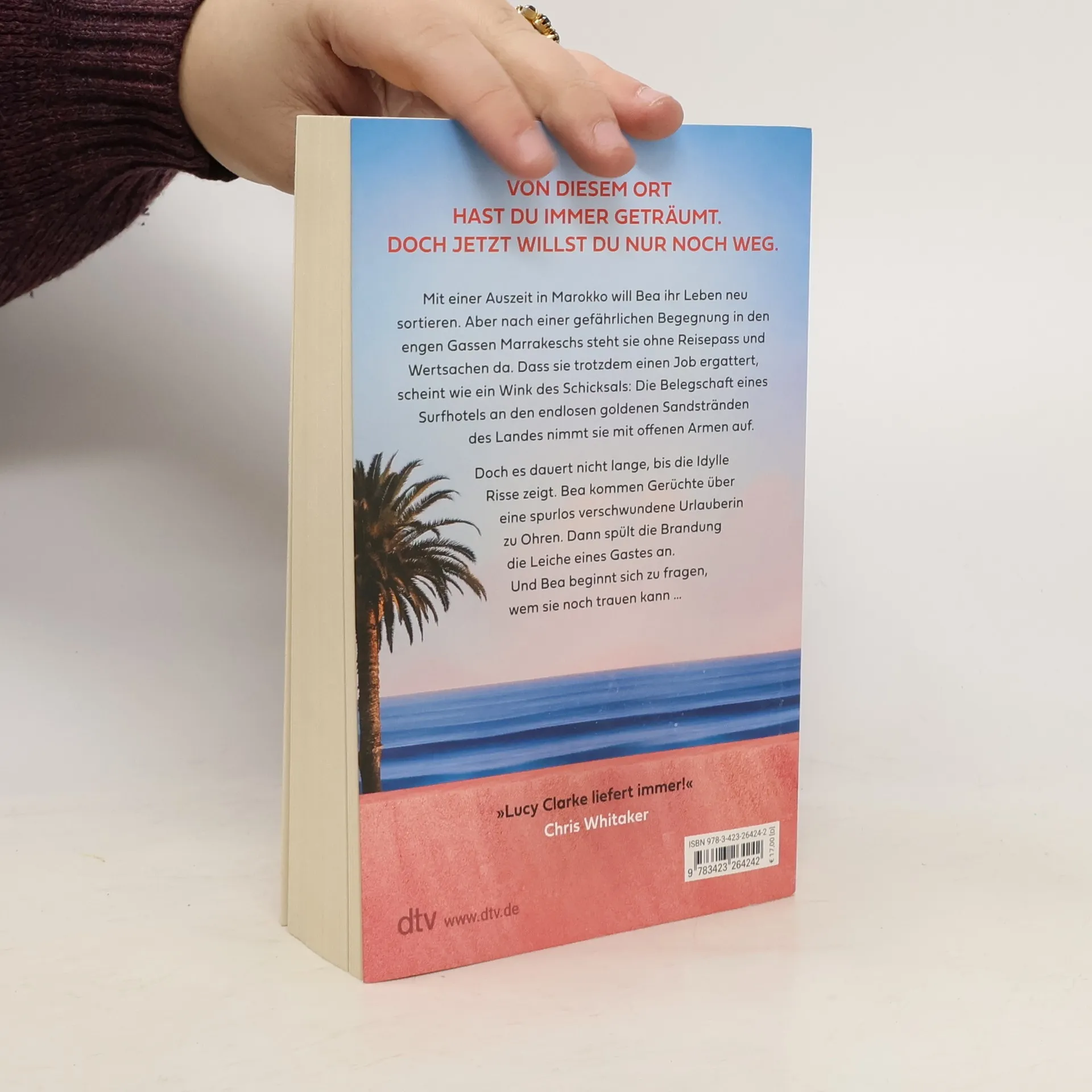 Du glaubst, du bist im Paradies gelandet. Doch das Paradies ist tödlich. Mit einer Auszeit in Marokko will Bea ihr Leben neu sortieren. Doch nach einer gefährlichen Begegnung in den engen Gassen Marrakeschs sind Geld und Ausweis weg. Dass sie trotzdem einen Job ergattert, scheint wie ein Wink des Schicksals: Die Belegschaft eines Surfhotels an den endlosen, goldenen Sandstränden des Landes nimmt sie mit offenen Armen auf. Das Meer ist kristallklar, am Abend taucht die Sonne die roten Klippen in ein magisches Licht. Surfer und Yogis gehen ein und aus. Doch es dauert nicht lange, bis die Idylle Risse zeigt. Bea kommen Gerüchte über eine spurlos verschwundene Urlauberin zu Ohren. Dann spült die Brandung die Leiche eines Gastes an. Und Bea muss sich fragen, wem sie noch trauen kann …