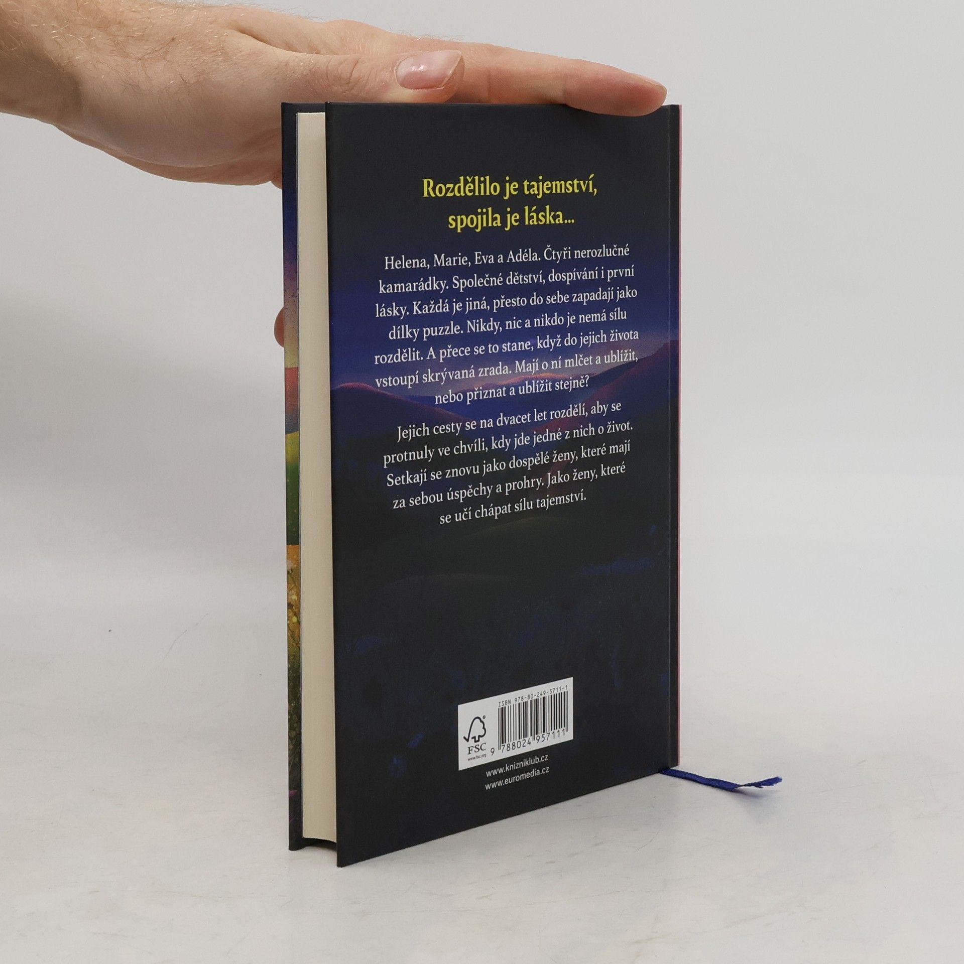 Rozdělilo je tajemství, spojila láska Helena, Marie, Eva a Adéla. Čtyři nerozlučné kamarádky. Společné dětství, dospívání i první lásky. Každá je jiná, přesto do sebe zapadají jako dílky puzzle. Nikdy, nic a nikdo je nemá sílu rozdělit. A přece se to stane, když do jejich života vstoupí skrývaná zrada. Mají o ní mlčet a ublížit, nebo přiznat a ublížit stejně? Jejich cesty se na dvacet let rozdělí, aby se protnuly ve chvíli, kdy jde jedné z nich o život. Setkají se znovu jako dospělé ženy, které mají za sebou úspěchy a prohry. Jako ženy, které se učí chápat sílu tajemství.