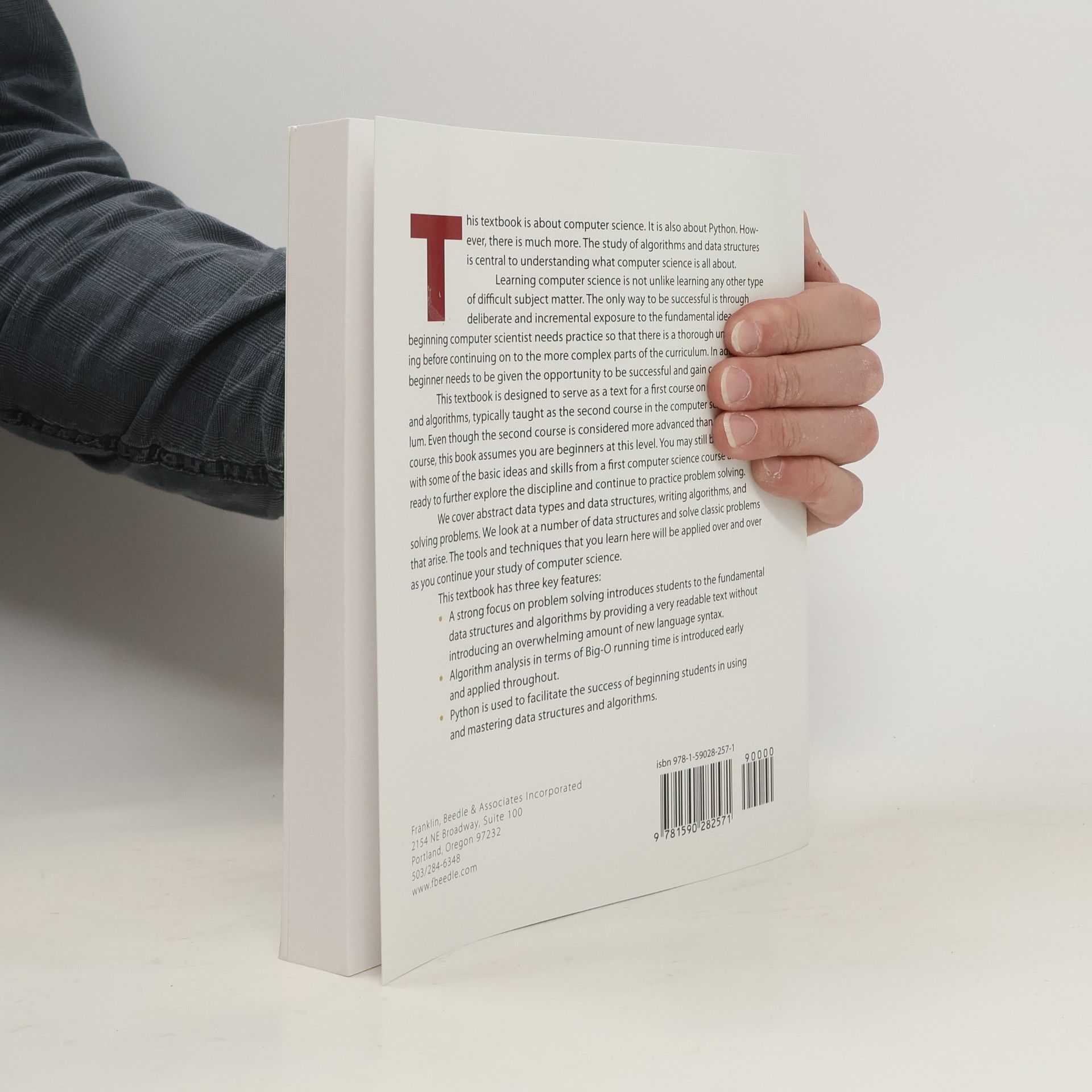This textbook is about computer science. It is also about Python. However, there is much more. The study of algorithms and data structures is central to understanding what computer science is all about. Learning computer science is not unlike learning any other type of difficult subject matter