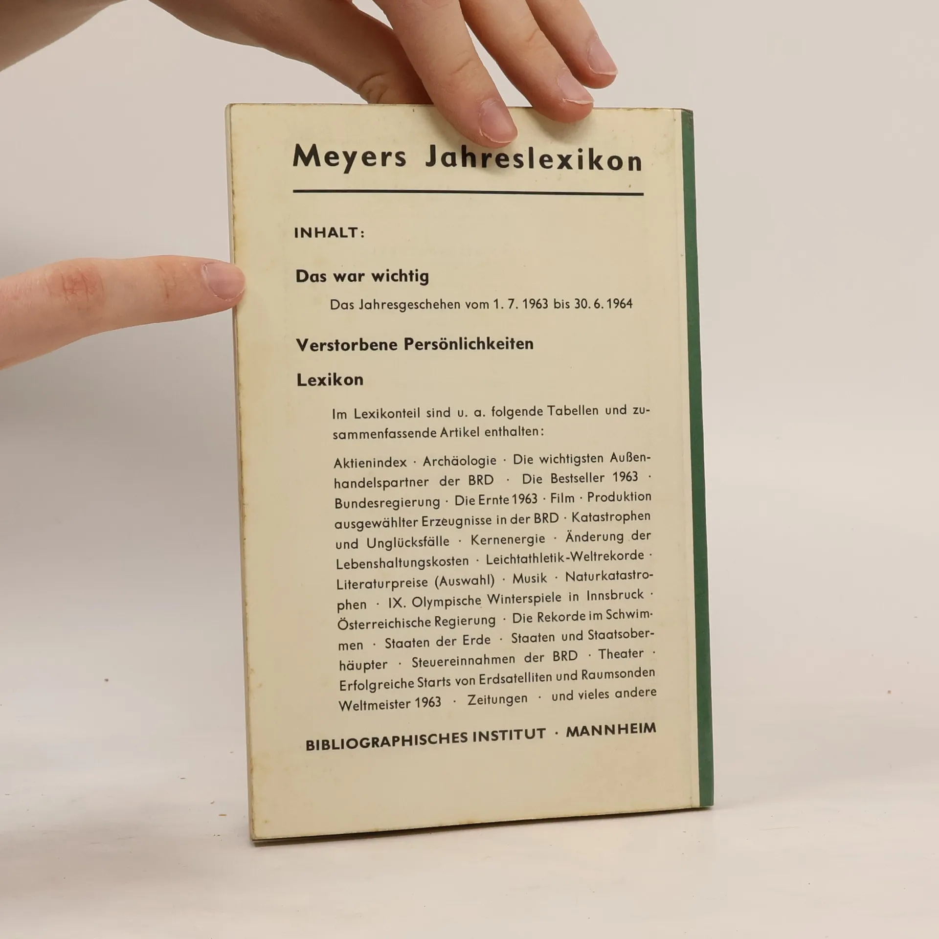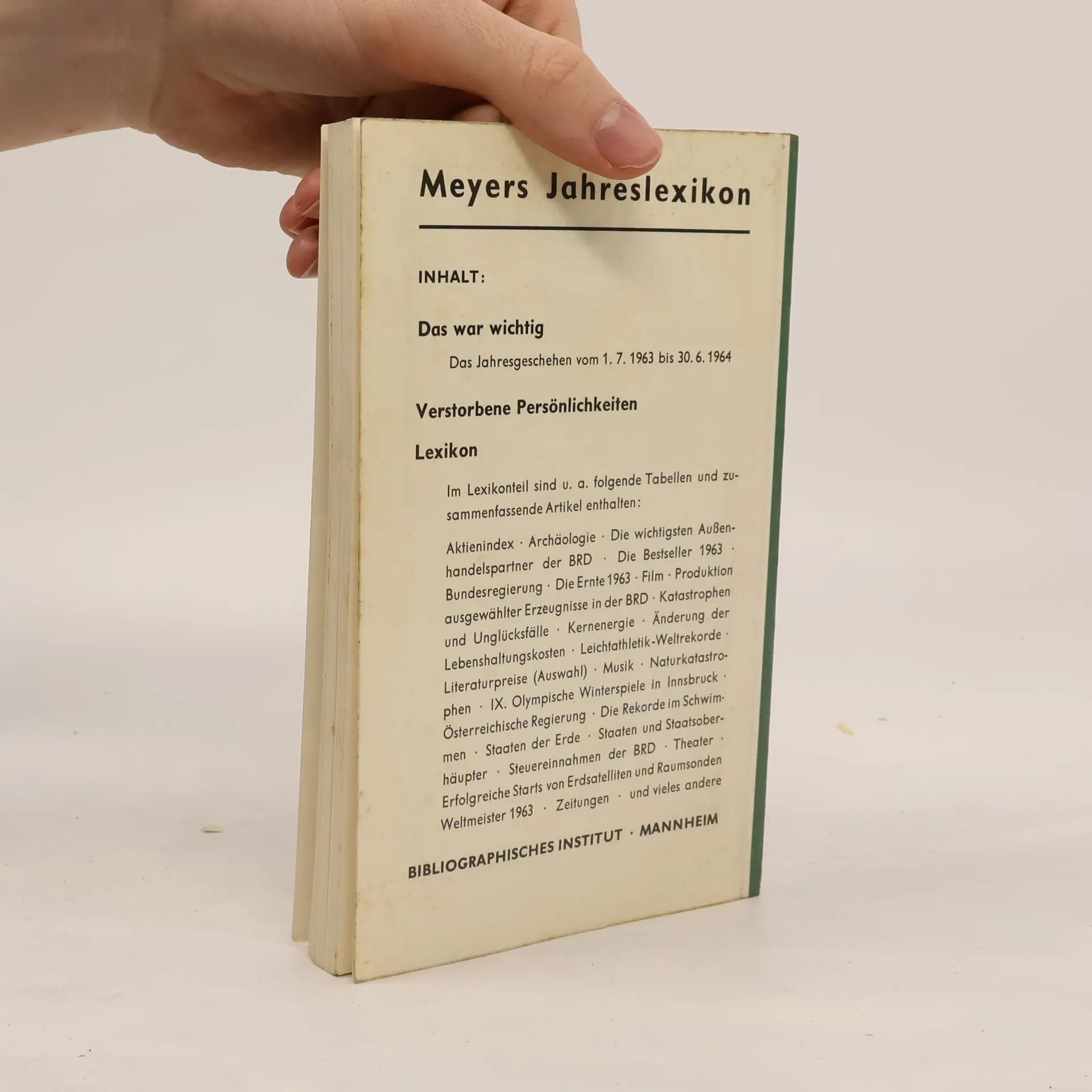 Ci sono attualmente del libroMeyers Jahreslexikon 1963/64 (1964 ) in magazzino.