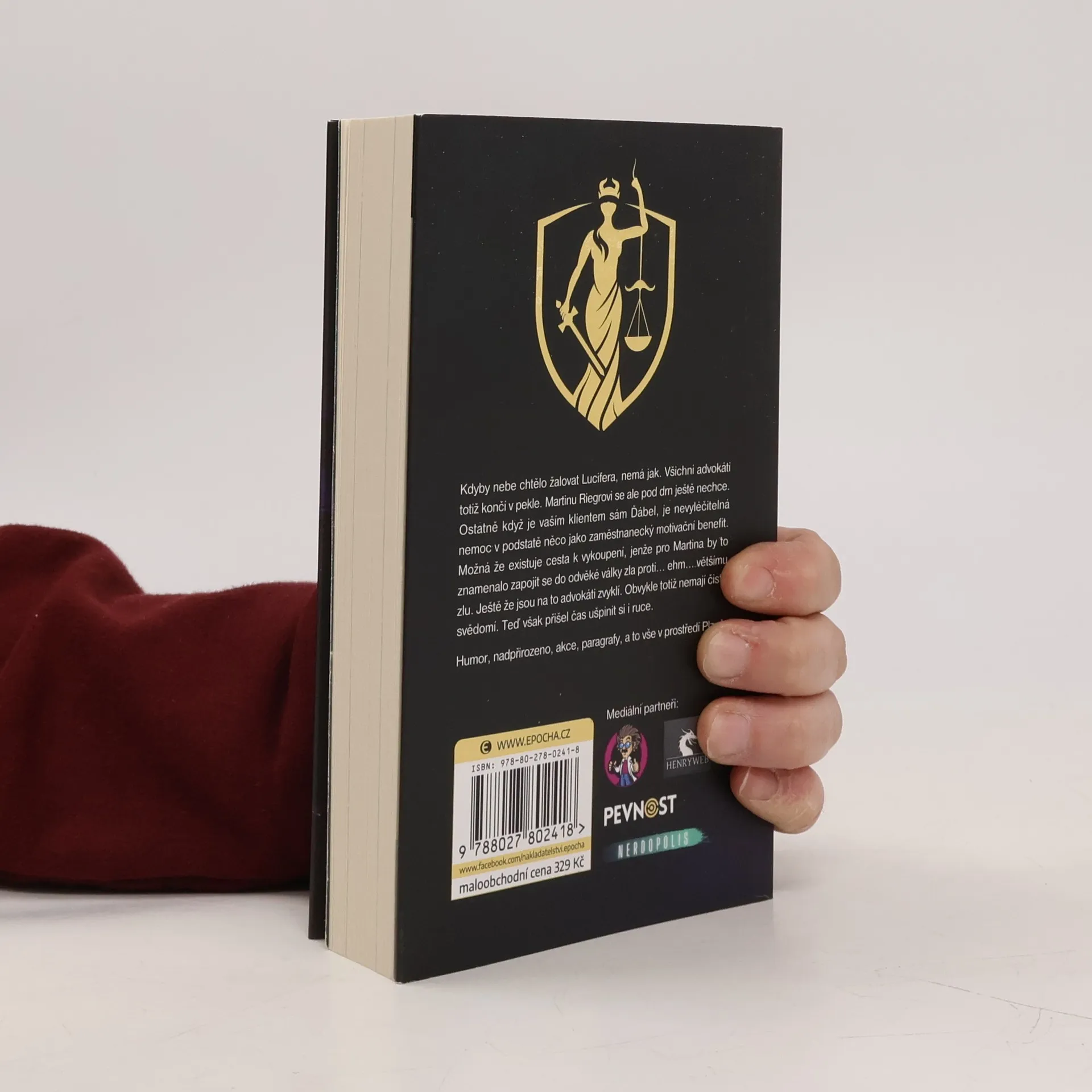 Kdyby nebe chtělo žalovat Lucifera, nemá jak. Všichni advokáti totiž končí v pekle. Martinu Riegrovi se ale pod drn ještě nechce. Ostatně když je vaším klientem sám Ďábel, je nevyléčitelná nemoc v podstatě něco jako zaměstnanecký motivační benefit. Možná že existuje cesta k vykoupení, jenže pro Martina by to znamenalo zapojit se do odvěké války zla proti… ehm… většímu zlu. Ještě že jsou na to advokáti zvyklí. Obvykle totiž nemají čisté svědomí. Teď však přišel čas ušpinit si i ruce.Humor, nadpřirozeno, akce, paragrafy, a to vše v prostředí Plzně.