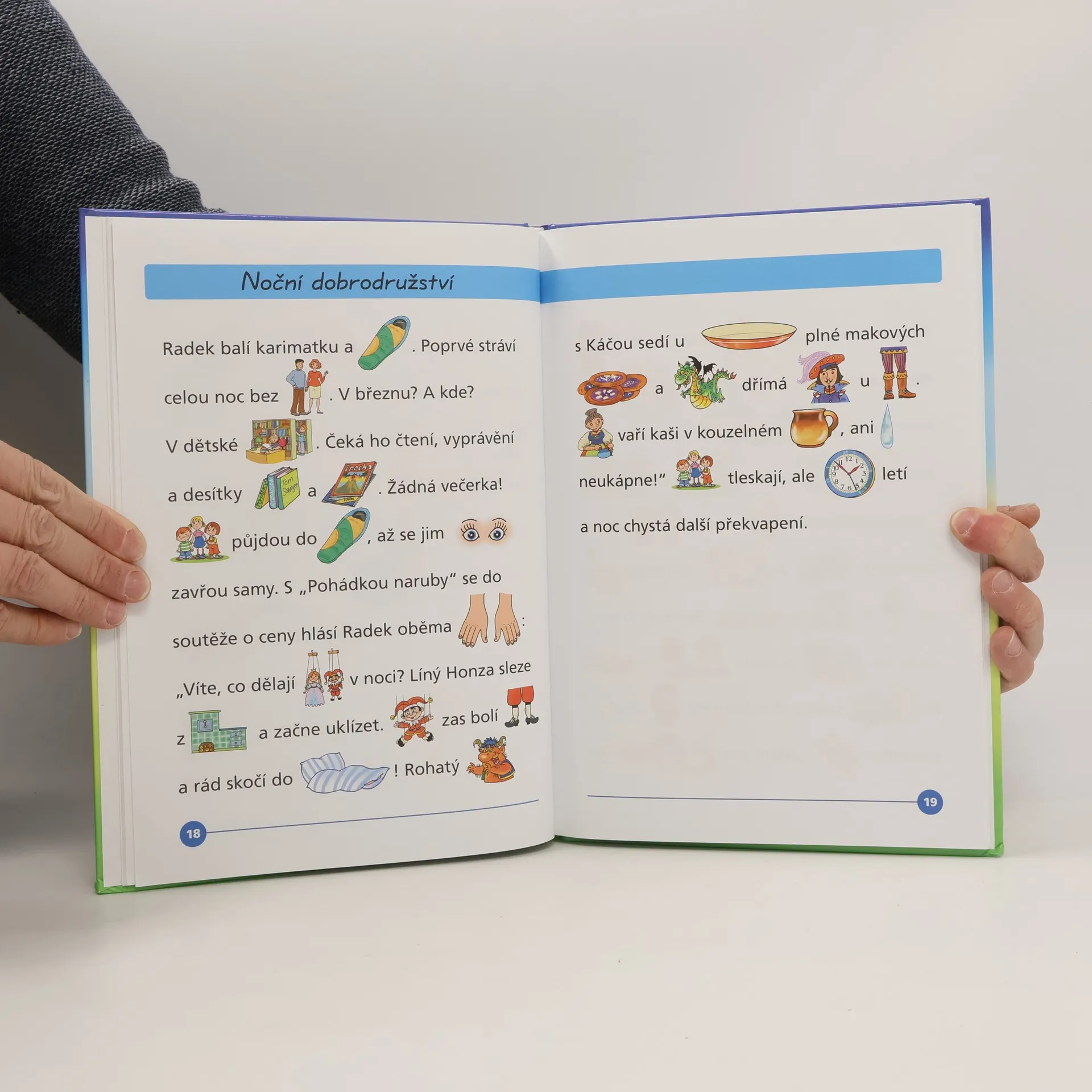 Barevná vyprávění pro začínající čtenáře! 22 krátkých příběhů pro děti, v nichž jsou některá slova nahrazena obrázky. Než dítě vyroste, čeká ho spousta zážitků s rodinou i s kamarády, ale také se toho hodně naučí: jak se chovat k mladšímu sourozenci, jak se chovat na ulici a mnoho dalšího.