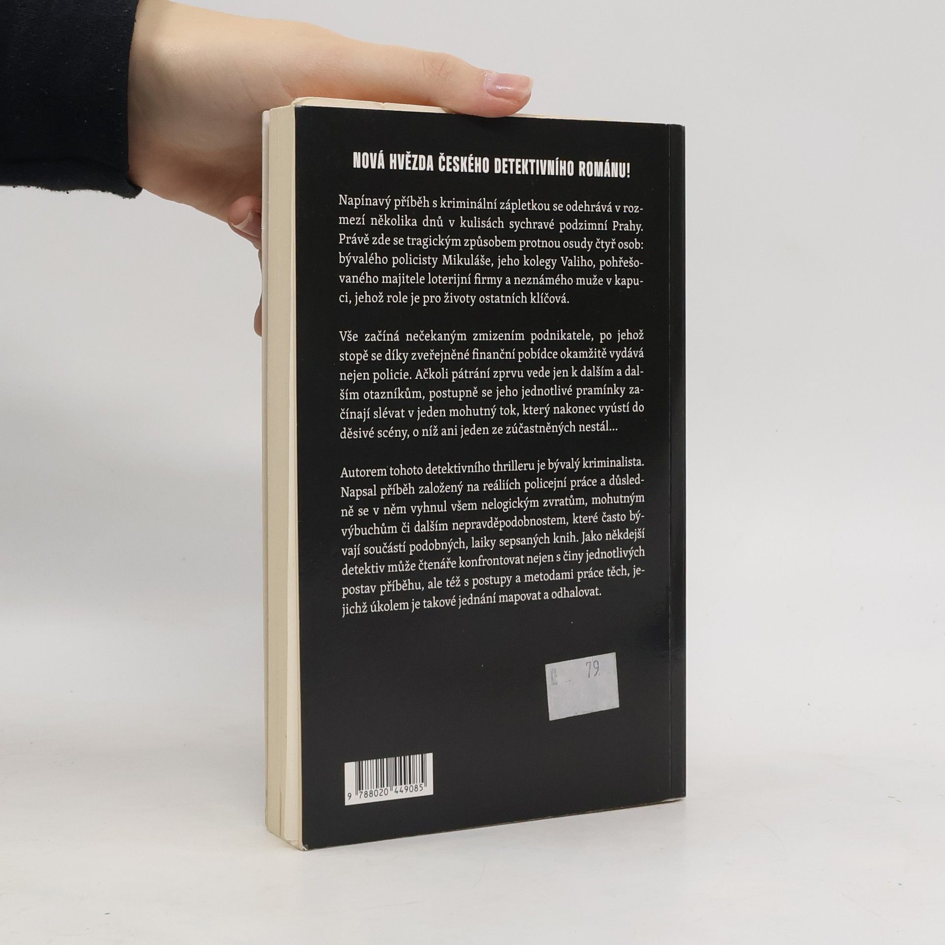 Napínavý příběh s kriminální zápletkou se odehrává v rozmezí několika dnů v kulisách sychravé podzimní Prahy. Právě zde se tragickým způsobem protnou osudy čtyř osob: bývalého policisty Mikuláše, jeho kolegy Valiho, pohřešovaného majitele loterijní firmy a neznámého muže v kapuci, jehož role je pro životy ostatních klíčová. Vše začíná nečekaným zmizením podnikatele, po jehož stopě se díky zveřejněné finanční pobídce okamžitě vydává nejen policie. ačkoli pátrání zprvu vede jen k dalším a dalším otazníkům, postupně se jeho jednotlivé pramínky začínají slévat v jeden mohutný tok, který nakonec vyústí do děsivé scény, o niž ani jeden ze zúčastněných nestál... Autor, píšící pod pseudonymem, je bývalý kriminalista a jeho příběh je založený na reáliích policejní práce. Jako někdejší detektiv může čtenáře konfrontovat nejen s činy jednotlivých postav příběhu, ale též s postupy a metodami práce těch, jejichž úkolem je takové jednání mapovat a odhalovat.