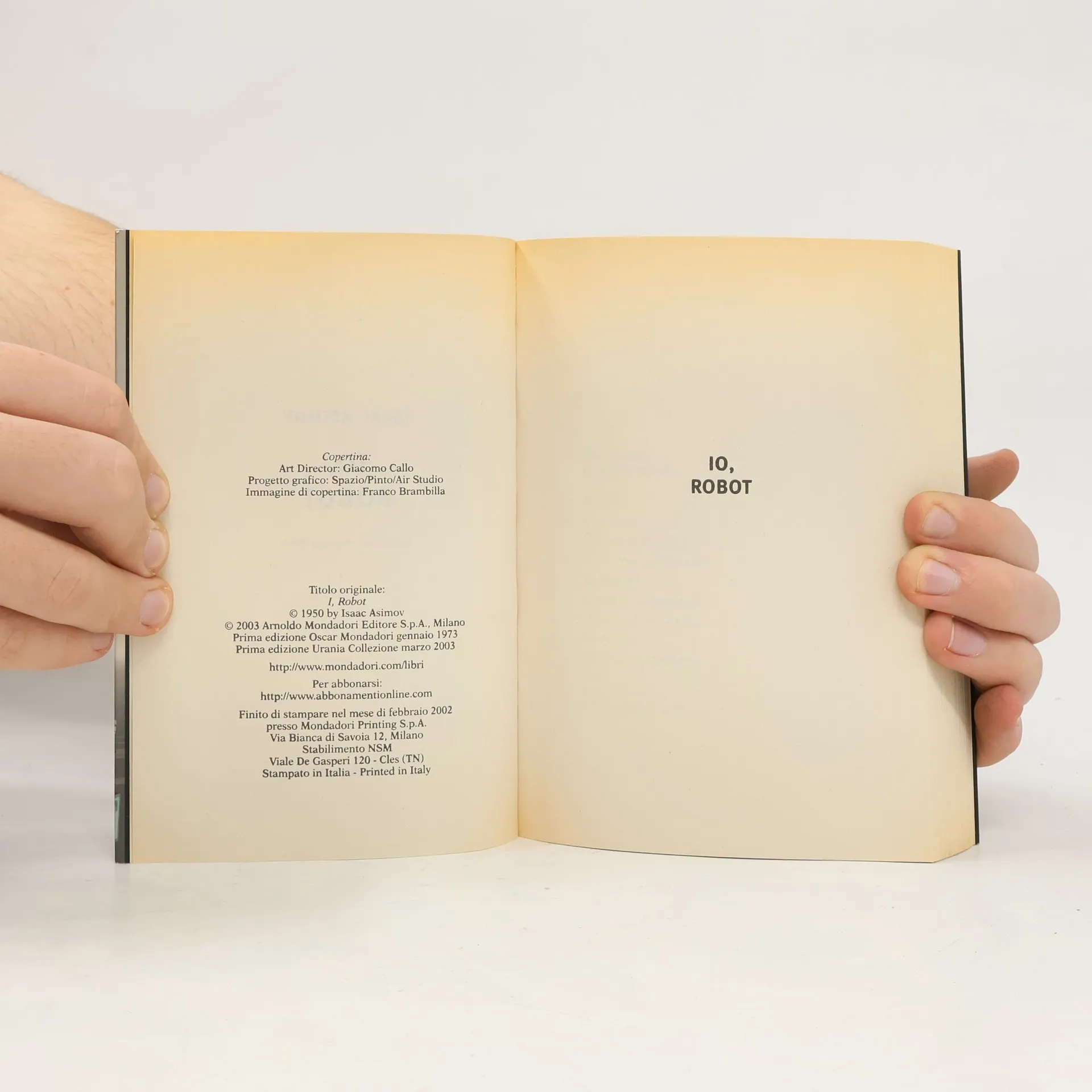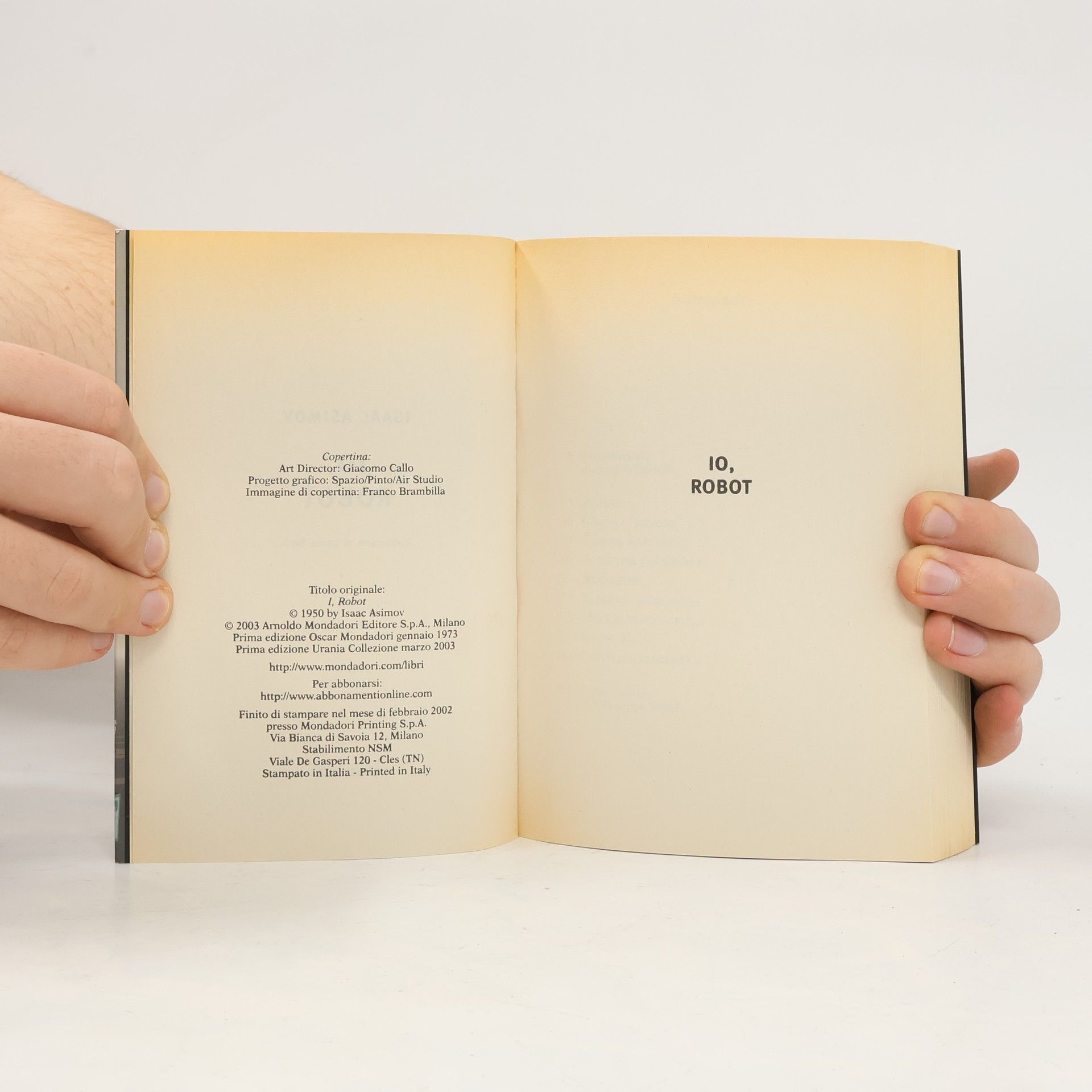 Pubblicata per la prima volta nel 1950, questa celebre antologia raccoglie i più significativi racconti che il più prolifico e famoso scrittore di fantascienza di tutti i tempi ha dedicato ai robot. È proprio in questo libro che Asimov detta le tre Leggi della robotica, che regolano appunto il comportamento delle "macchine pensanti" e che da allora in poi sono alla base di tutta la letteratura del genere.
