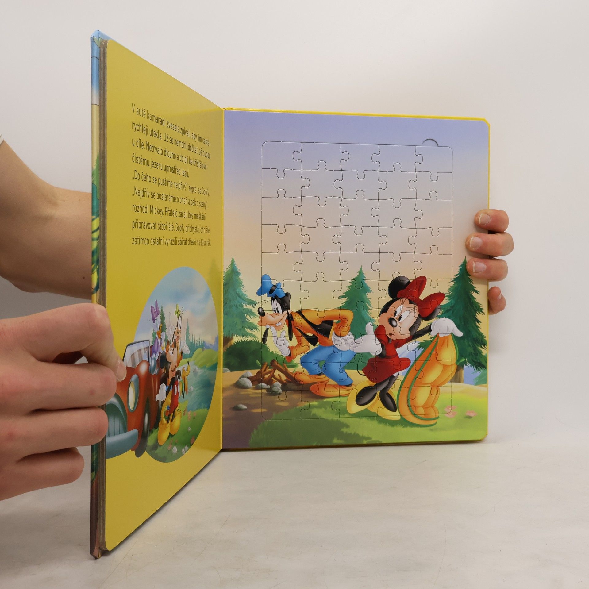 Zábavná knížka s pěti velkými skládačkami a veselým vyprávěním o příhodách myšáka Mickeyho a jeho přátel.
