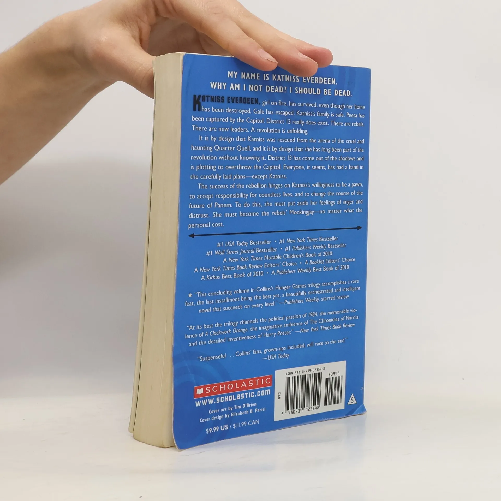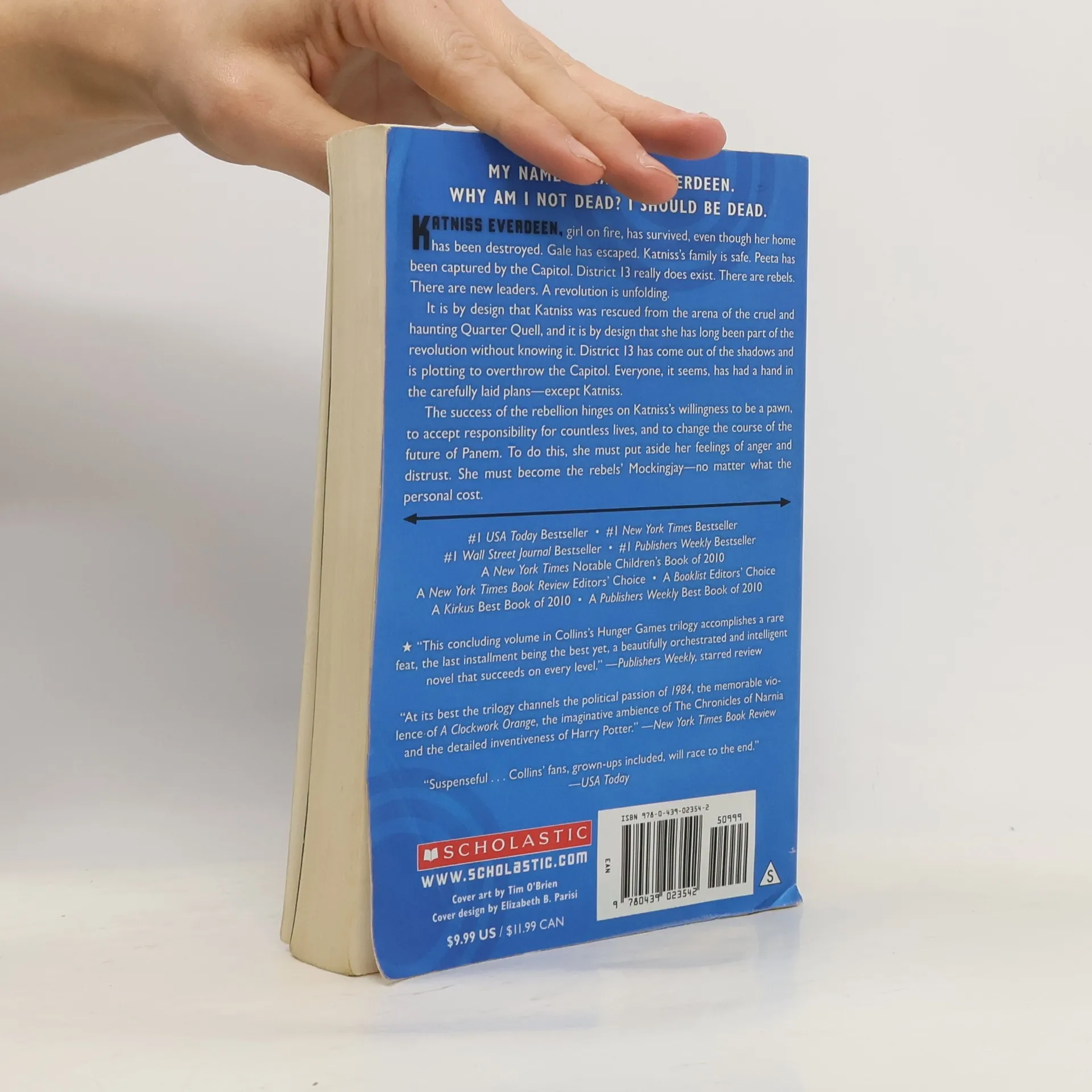 MY NAME IS KATNISS EVERDEEN. WHY AM I NOT DEAD? I SHOULD BE DEAD. Katniss Everdeen, girl on fire, has survived, even though her home has been destroyed. Gale has escaped. Katniss's family is safe. Peeta has been captured by the Capitol. District 13 really does exist. There are rebels. There are new leaders. A revolution is unfolding. It is by design that Katniss was rescued from the arena in the cruel and haunting Quarter Quell, and it is by design that she has long been part of the revolution without knowing it. District 13 has come out of the shadows and is plotting to overthrow the Capitol. Everyone, it seems, has had a hand in the carefully laid plans -- except Katniss. The success of the rebellion hinges on Katniss's willingness to be a pawn, to accept responsibility for countless lives, and to change the course of the future of Panem. To do this, she must put aside her feelings of anger and distrust. She must become the rebels' Mockingjay -- no matter what the personal cost.