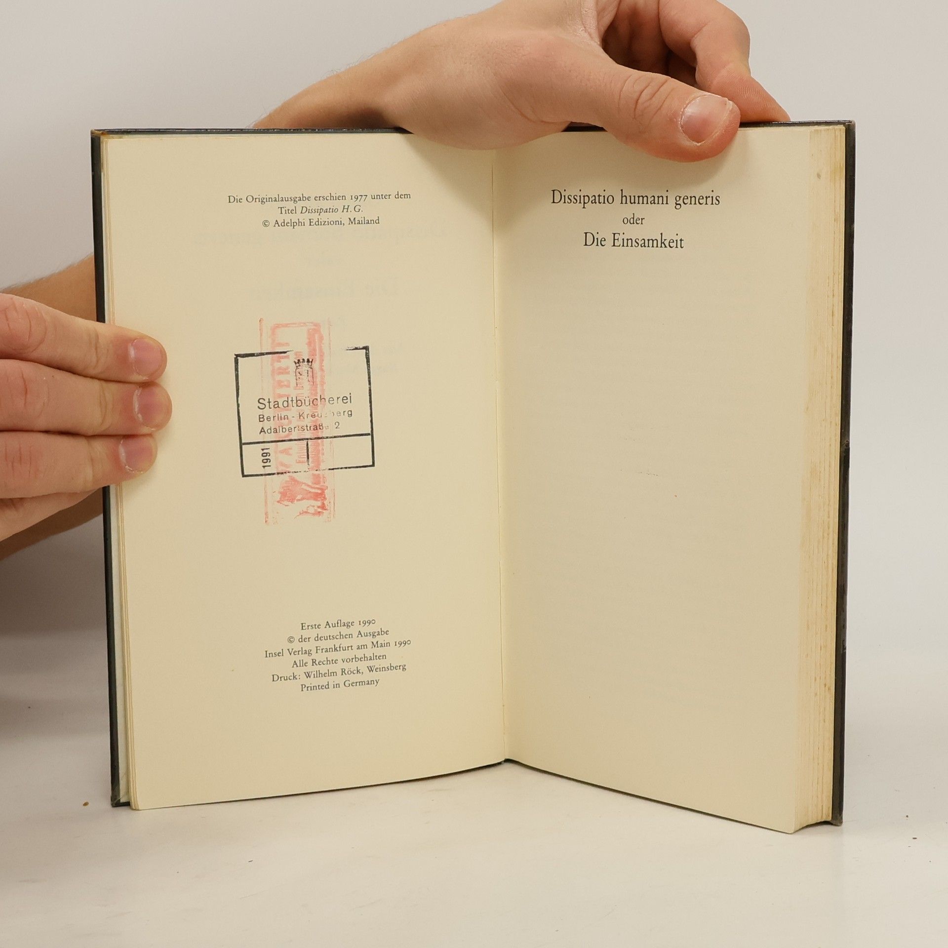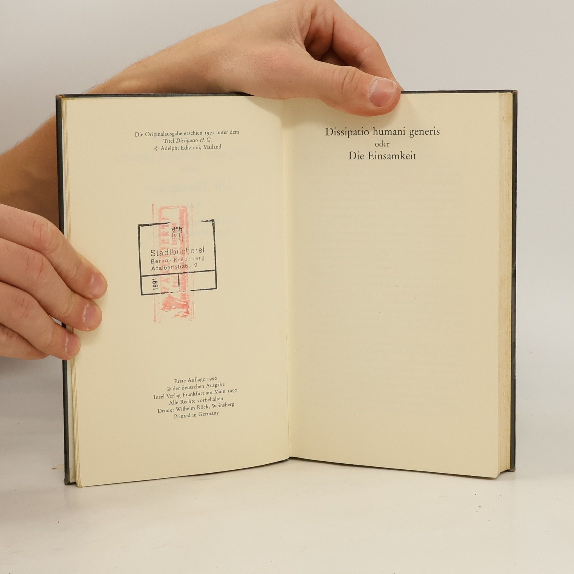 Ci sono attualmente del libroDissipatio humani generis oder die Einsamkeit (1990 ) in magazzino.