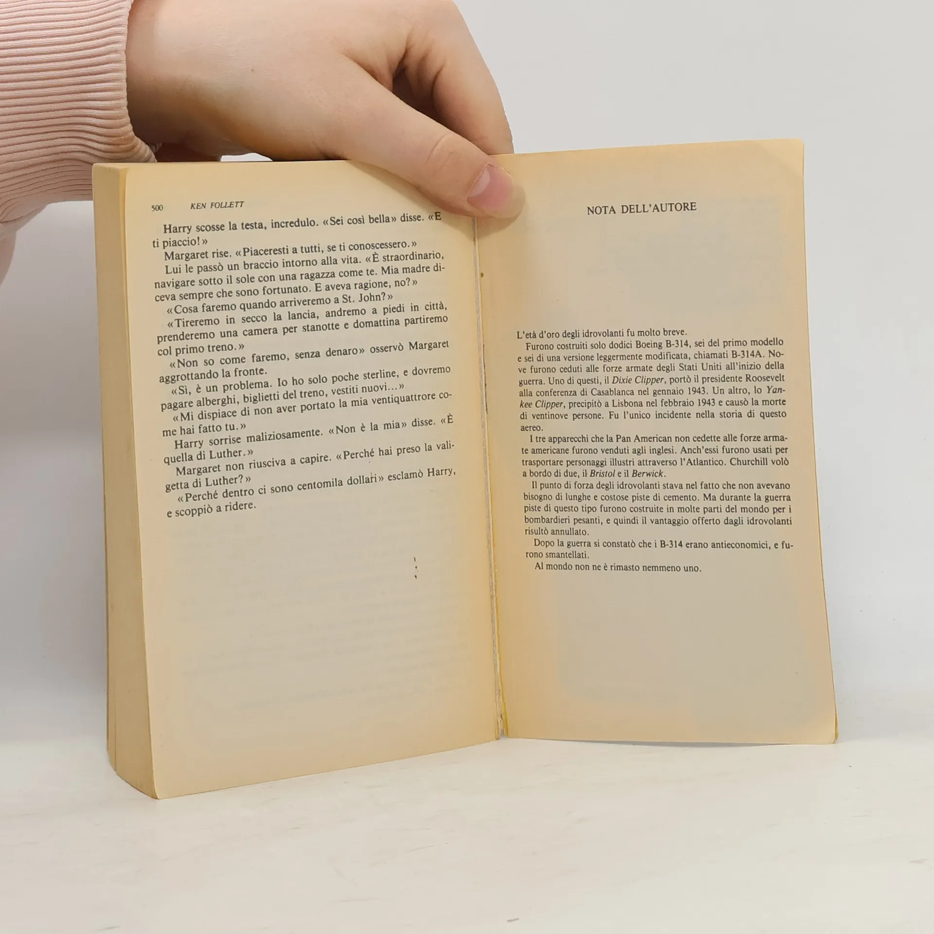 Settembre 1939. Nel giorno in cui l'Inghilterra dichiara guerra alla Germania, un gigantesco idrovolante si posa sulle acque della manica di fronte a Southampton. È lo Yankee Clipper della Pan American, l'aereo più lussuoso mai costruito, in servizio fra gli Stati Uniti e l'Inghilterra, pronto a decollare per uno dei primi voli di linea transoceanici. Sull'aereo sta per imbarcarsi un eterogeneo gruppo di passeggeri in fuga da un passato scomodo, ossessionante, ancora più minaccioso della guerra. Resteranno in volo per più di trenta ore durante le quali, con un gioco ininterrotto di capovolgimenti e di minacce, emergeranno a poco a poco i segreti di ciascuno. Follett ricrea magistralmente un episodio leggendario dell'epopea dell'aviazione, in un momento in cui il mondo sta per cambiare per sempre.