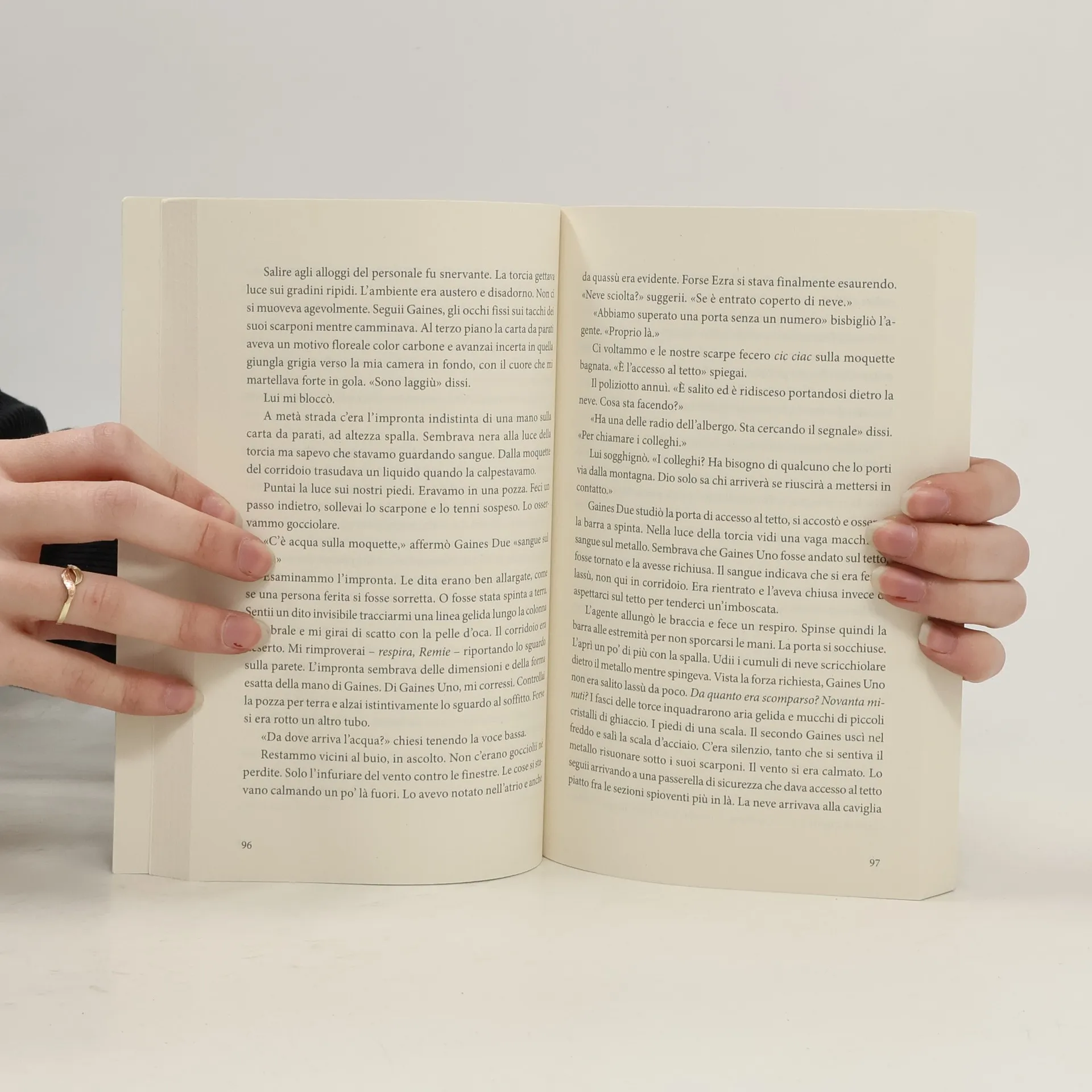 "Remie Yorke sta svolgendo il suo ultimo turno al Mackinnon Hotel prima della chiusura invernale, quando si scatena la tempesta Ezra che taglia ogni collegamento col mondo esterno. Mentre le temperature precipitano e le linee telefoniche si interrompono, un uomo ferito chiede rifugio. Si tratta dell’agente Don Gaines, rimasto coinvolto in un terribile incidente. L’unico altro sopravvissuto? Il detenuto che la sua squadra stava trasportando. Ma poco dopo arriva un secondo sconosciuto: anche lui è ferito e anche lui dichiara di essere Don Gaines. Qualcuno sta mentendo e Remie, senza alcuna via di fuga, dovrà scoprire chi dei due prima che sia troppo tardi. Perché se non la ucciderà il freddo, lo farà uno di loro..." -- goodreads.com