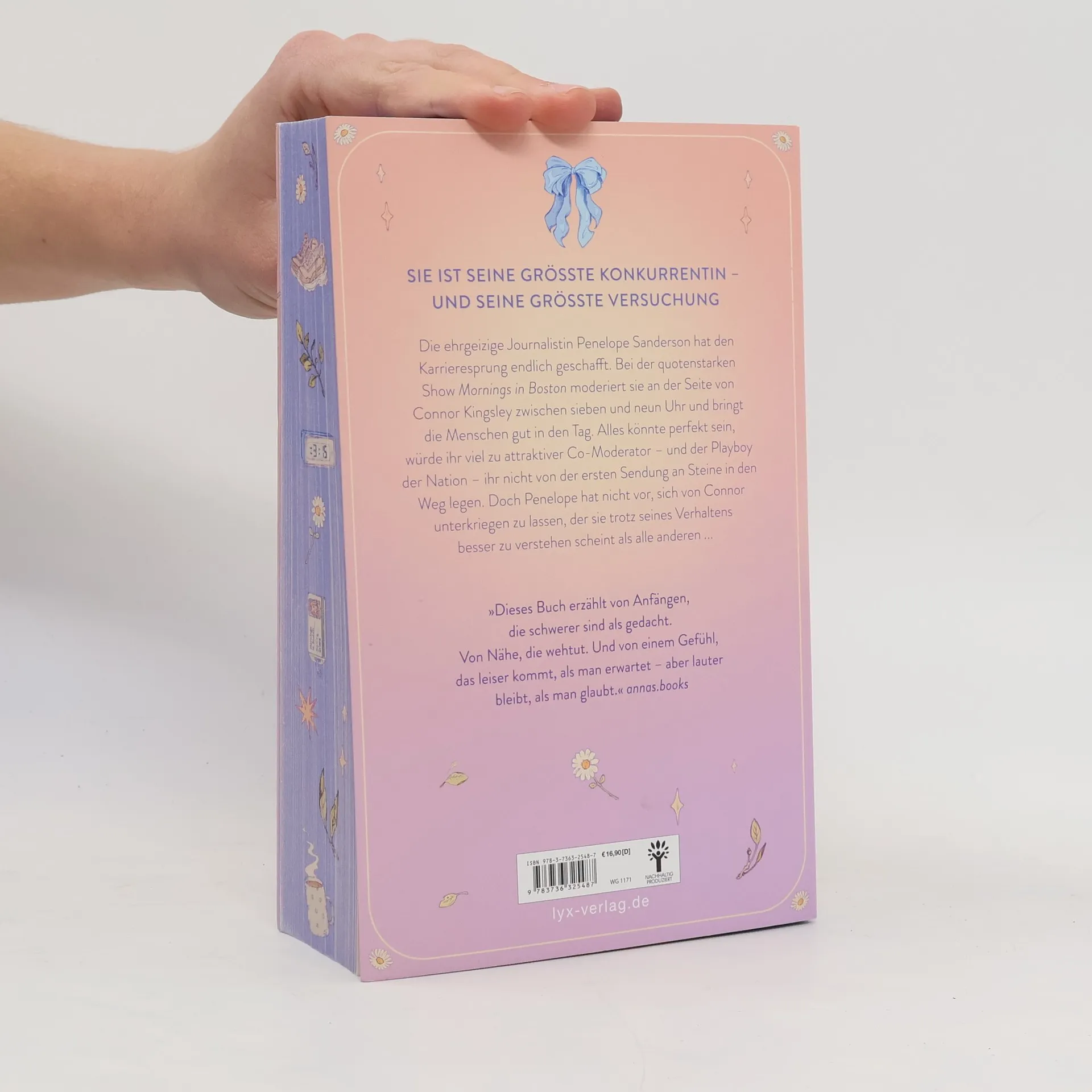 Dieses Buch gibt es in zwei Versionen: mit und ohne Motiv-Farbschnitt. Sobald die Farbschnitt-Ausgabe ausverkauft ist, liefern wir die Ausgabe ohne Farbschnitt aus. Rivals to Lovers am Set einer Morningshow Die ehrgeizige Journalistin Penelope Sanderson hat den Karrieresprung in eine quotenstarke Sendung endlich geschafft. Bei MORNINGS IN BOSTON moderiert sie an der Seite von Connor Kingsley zwischen sieben und neun Uhr und bringt die Menschen gut in den Tag. Alles könnte perfekt sein, würde ihr viel zu attraktiver Co-Moderator — und Playboy der Nation — ihr nicht von der ersten Sendung an Steine in den Weg legen, um seinen eigenen Erfolg zu sichern. Doch Penelope hat nicht vor, sich von Connor unterkriegen zu lassen, der sie trotz allem besser zu verstehen scheint als alle anderen. Und noch weniger, etwas in die spielerischen Flirts vor der Kamera hineinzuinterpretieren ... Reihenauftakt der Love-on-Air-Trilogie von Neuentdeckung Anna Lane