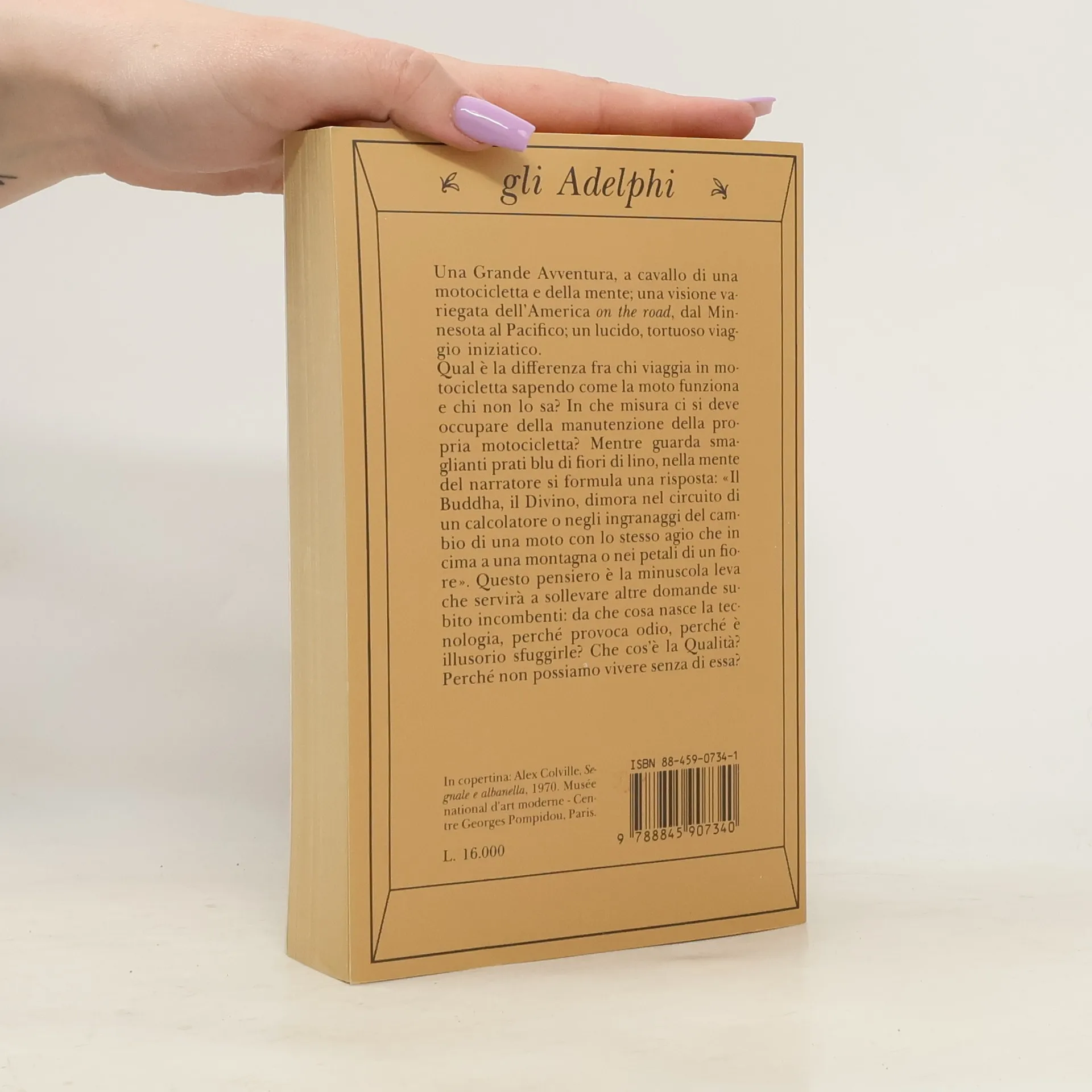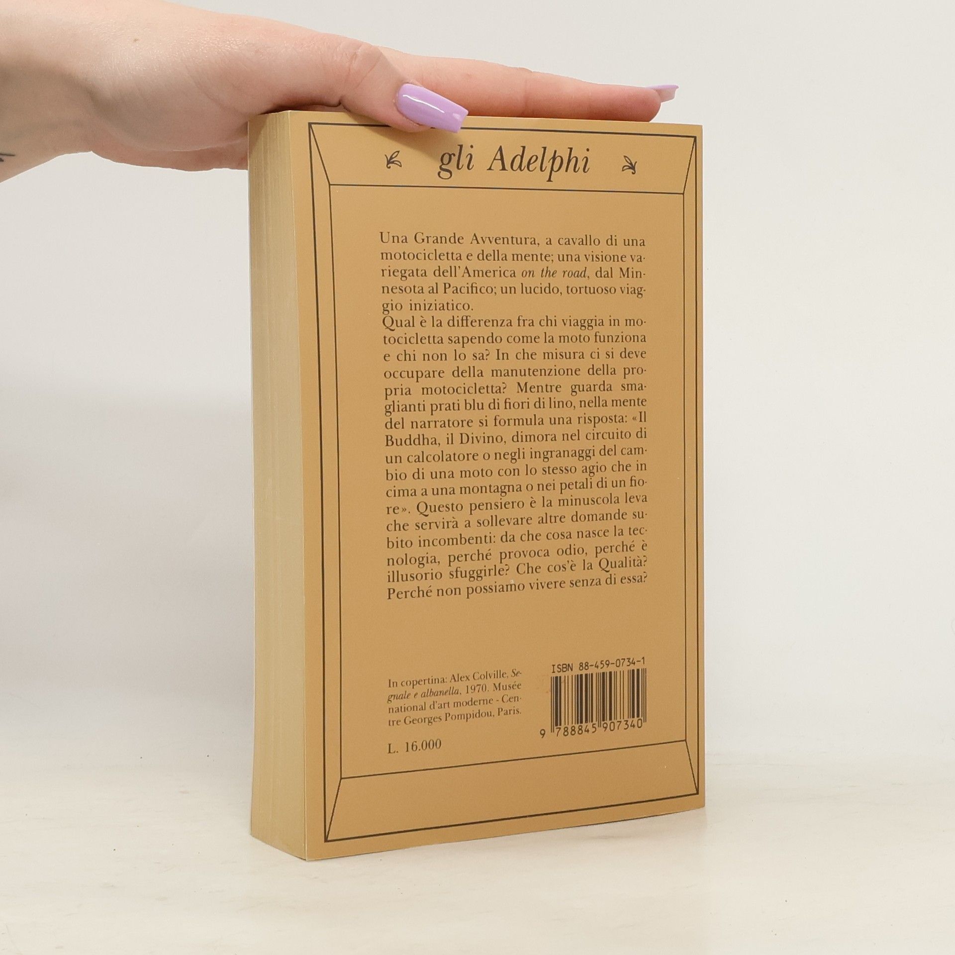 An alternate cover for this isbn can be found here. Una Grande Avventura, a cavallo di una motocicletta e della mente; una visione variegata dell'America on the road, dal Minnesota al Pacifico; un lucido, tortuoso viaggio iniziatico. Qual è la differenza fra chi viaggia in motocicletta sapendo come la moto funziona e chi non lo sa? In che misura ci si deve occupare della manutenzione della propria motocicletta? Mentre guarda smaglianti prati blu di fiori di lino, nella mente del narratore si forumula una risposta: «Il Buddha, il Divino, dimora nel circuito di un calcolatore o negli ingranaggi del cambio di una moto con lo stesso agio che in cima a una montagna o nei petali di un fiore». Questo pensiero è la minuscola leva che servirà a sollevare altre domande subito incombenti: da che cosa nasce la tecnologia, perché provoca odio, perché è illusorio sfuggirle? Che cos'è la Qualità? Perché non possiamo vivere senza di essa?
