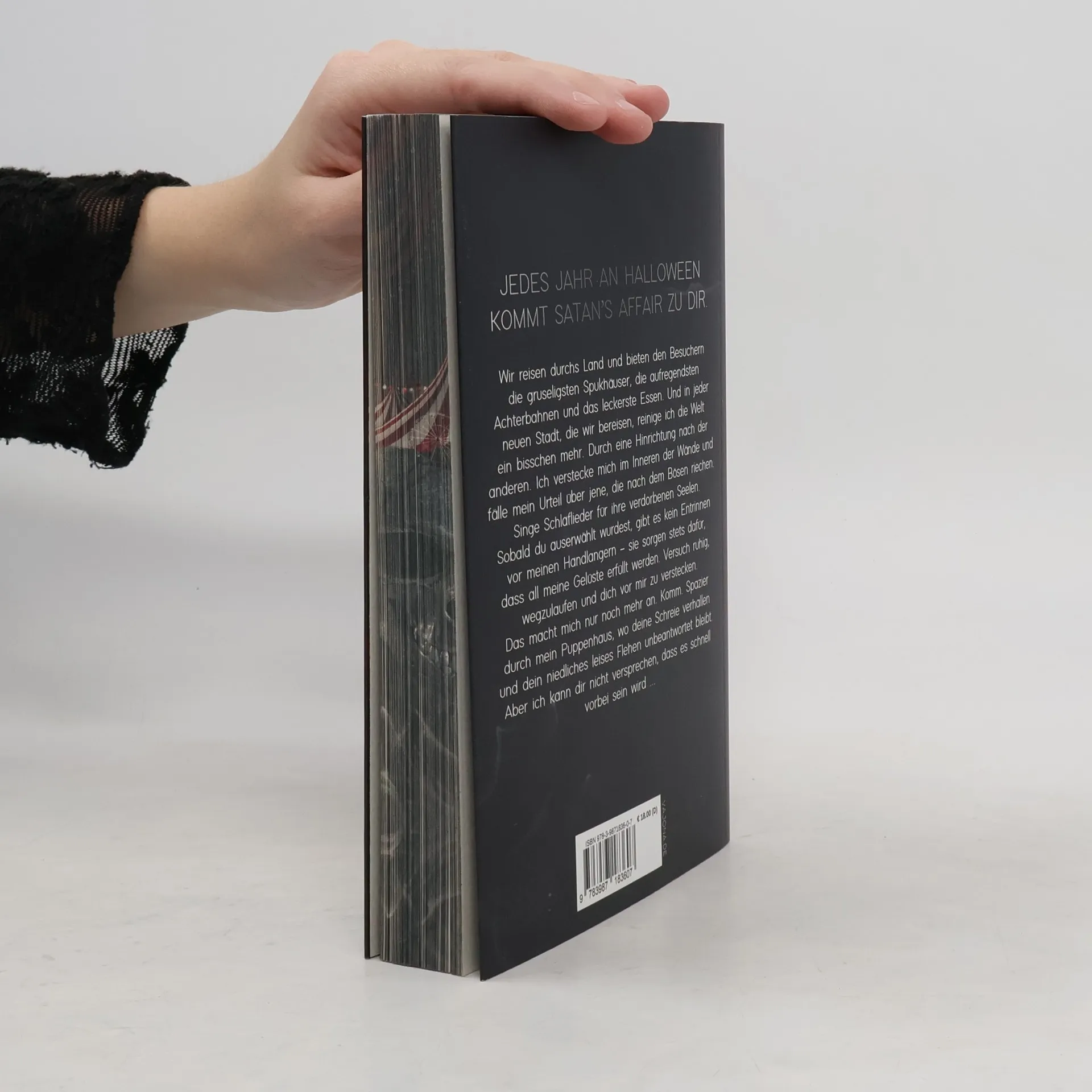 Mit farbigem Buchschnitt - limitiert - Jedes Jahr an Halloween kommt Satan’s Affair zu dir. Wir reisen durchs Land und bieten den Besuchern die gruseligsten Spukhäuser, die aufregendsten Achterbahnen und das leckerste Essen. Und in jeder neuen Stadt, die wir bereisen, reinige ich die Welt ein bisschen mehr. Durch eine Hinrichtung nach der anderen. Ich verstecke mich im Inneren der Wände und fälle mein Urteil über jene, die nach dem Bösen riechen. Singe Schlaflieder für ihre verdorbenen Seelen. Sobald du auserwählt wurdest, gibt es kein Entrinnen vor meinen Handlangern – sie sorgen stets dafür, dass all meine Gelüste erfüllt werden. Versuch ruhig, wegzulaufen und dich vor mir zu verstecken. Das macht mich nur noch mehr an. Komm. Spazier durch mein Puppenhaus, wo deine Schreie verhallen und dein niedliches leises Flehen unbeantwortet bleibt. Aber ich kann dir nicht versprechen, dass es schnell vorbei sein wird ... Leseempfehlung: ab 18 Jahre