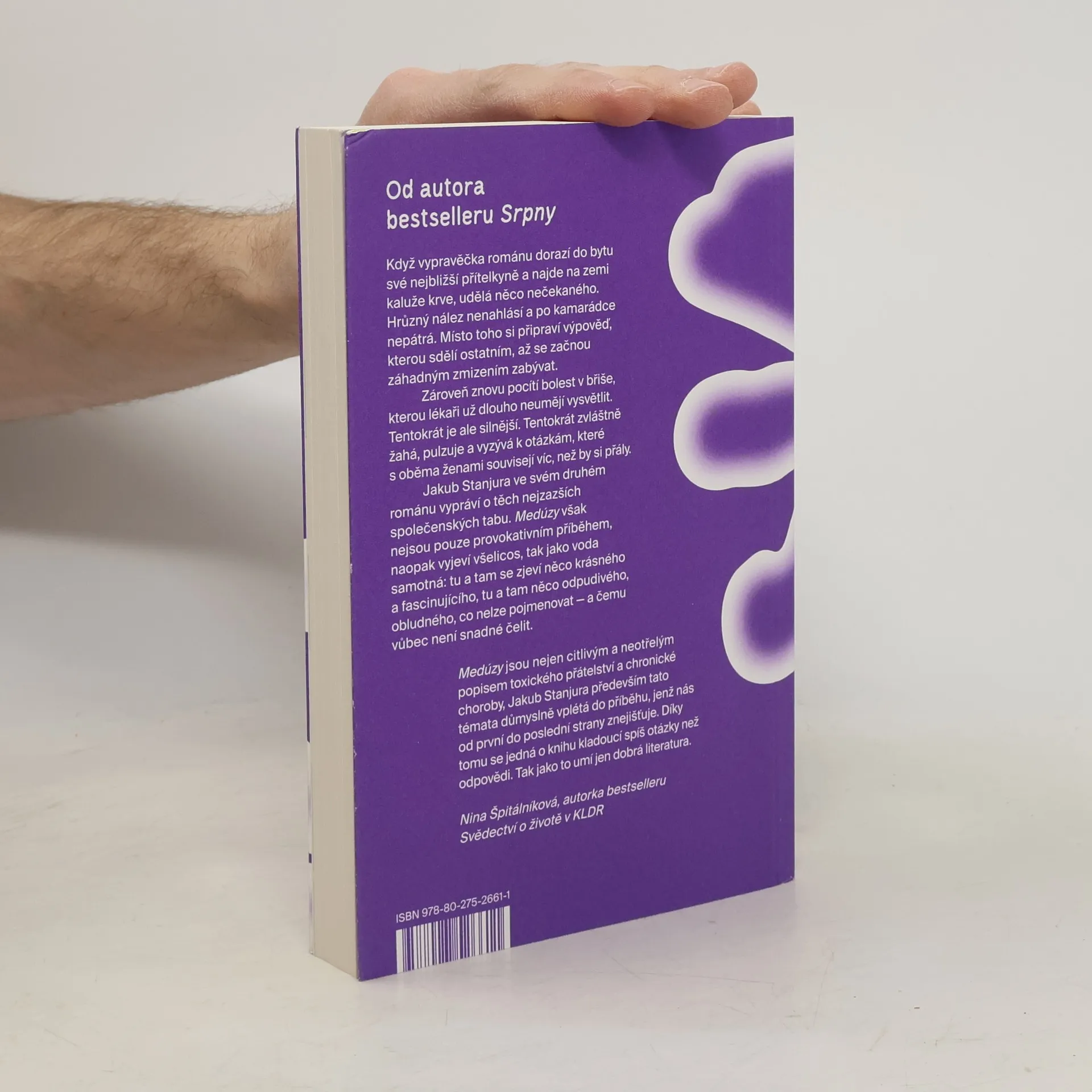 Pronikavý psychologický román o konci přátelství, vině a chronické bolesti Když vypravěčka románu dorazí do bytu své nejbližší přítelkyně a najde na zemi kaluže krve, udělá něco nečekaného. Hrůzný nález nenahlásí a po kamarádce nepátrá. Místo toho si připraví výpověď, kterou sdělí ostatním, až se začnou záhadným zmizením zabývat. Zároveň znovu pocítí bolest v břiše, kterou lékaři už dlouho neumějí vysvětlit. Tentokrát je ale silnější. Tentokrát zvláštně žahá, pulzuje a vyzývá k otázkám, které s oběma ženami souvisejí víc, než by si přály. Jakub Stanjura ve svém druhém románu vypráví o těch nejzazších společenských tabu. Medúzy však nejsou pouze provokativním příběhem, naopak vyjeví všelicos, tak jako voda samotná: tu a tam se zjeví něco krásného a fascinujícího, tu a tam něco odpudivého, obludného, co nelze pojmenovat — a čemu vůbec není snadné čelit.