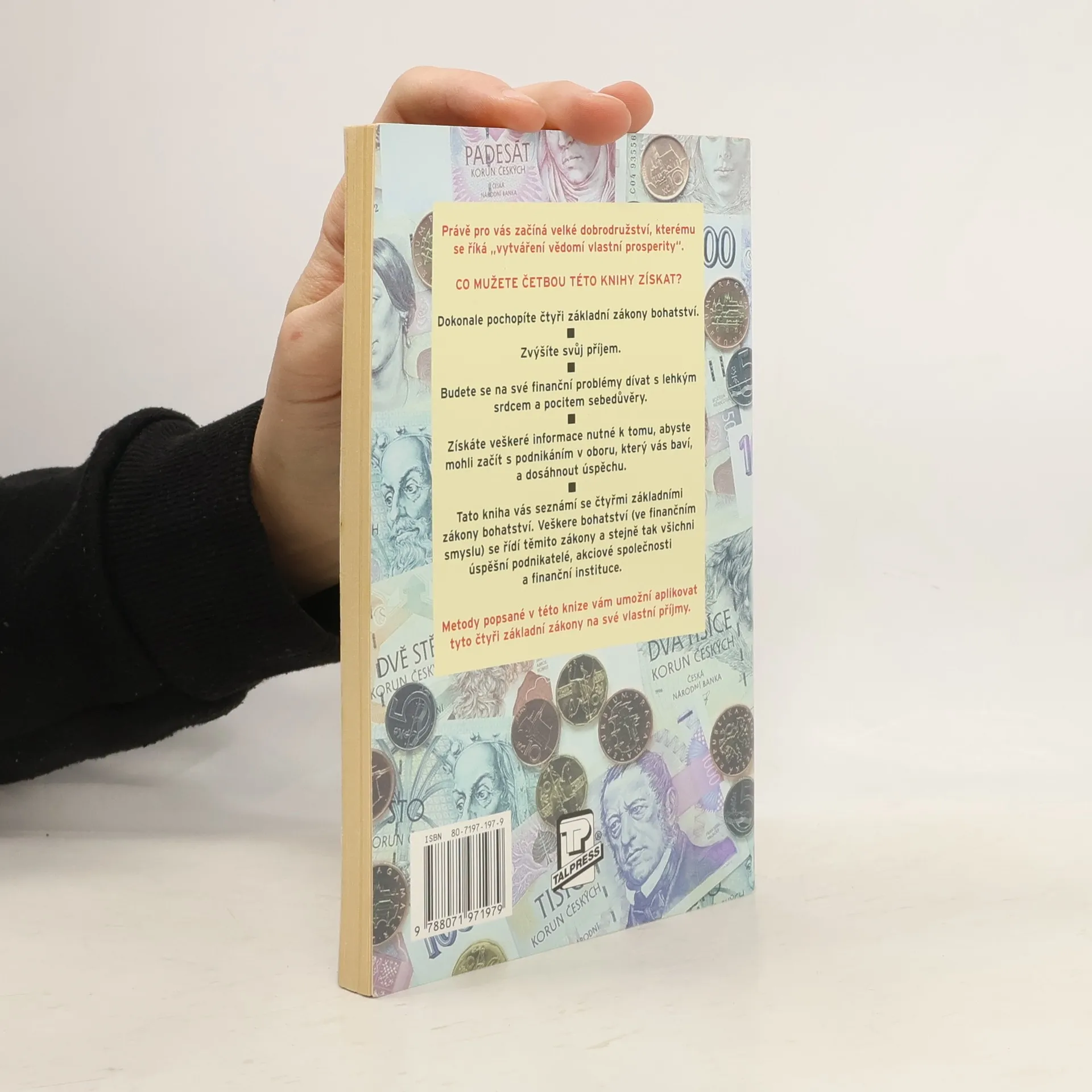 Tato kniha vás seznámí se čtyřmi základními zákony finančního bohatství. Řídí se jimi všichni úspěšní podnikatelé, akciové společnosti a finanční instituce. Na své finanční problémy se budete dívat s lehkým srdcem a pocitem sebedůvěry a vydáte se na dobrodružnou cestu vytváření vědomí vlastní prosperity.