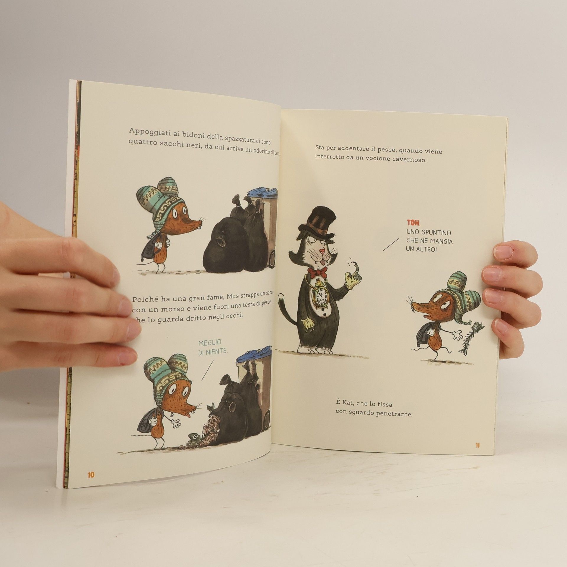 Mus è un topo e la sua passione è sferruzzare strani cappelli di lana. Con poco successo. Mis è un gatto che non mangia topi, ma costruisce stralunate invenzioni. Quando Mis e Mus si incontrano diventano gli acchiappacattivi! Tanto più che in città c'è Kat, che si esercita ad essere davvero, davvero cattivo... Età di lettura: da 4 anni.