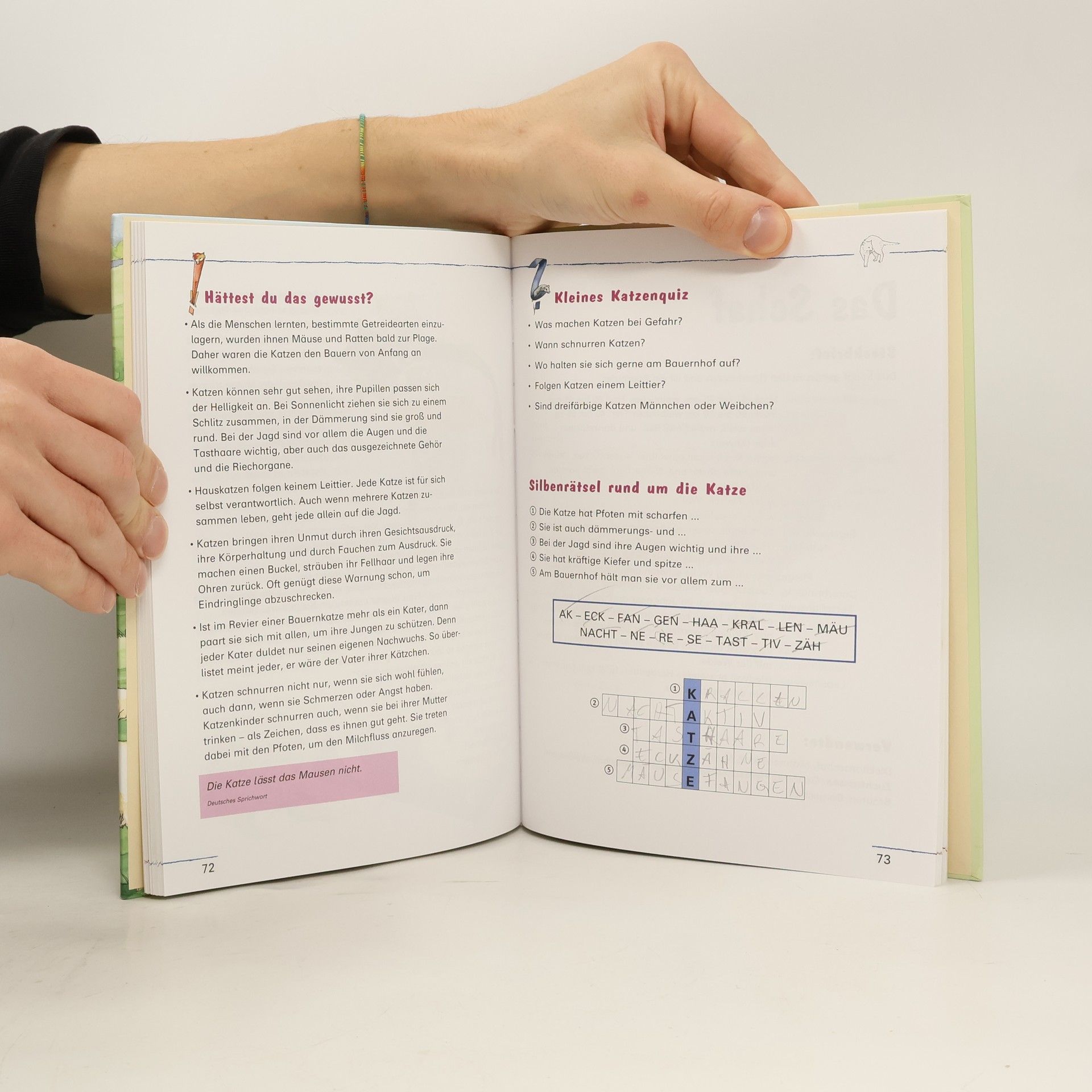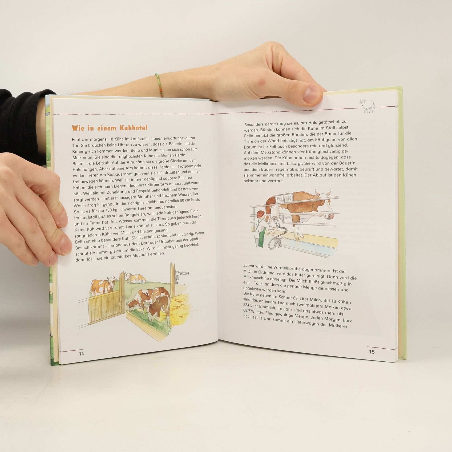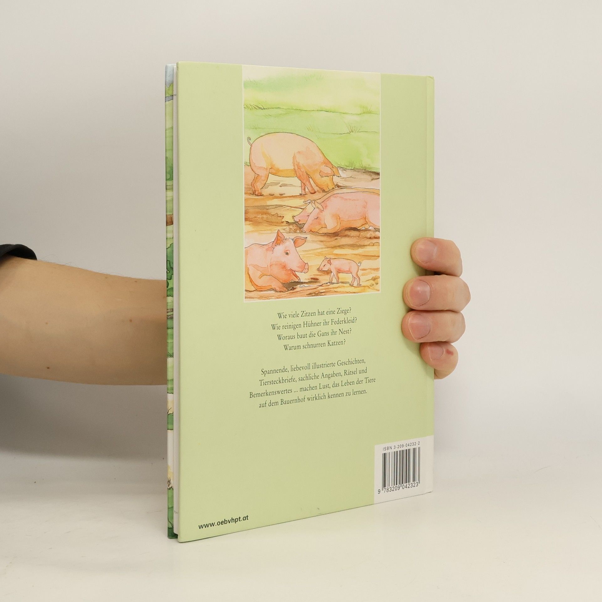Dieses kunstvoll illustrierte Buch stellt 10 Tiere, die auf dem Bauernhof leben, vor. Ein kurzer Steckbrief, spannende Geschichten, Quizfragen und bemerkenswerte Einzelheiten aus dem Leben der Tiere wecken das Interesse der Kinder. Im Band vorgestellt werden: Rind, Hausschwein, Pferd, Ziege, Kaninchen, Haushuhn, Hauskatze, Schaf, Hund und Hausgans