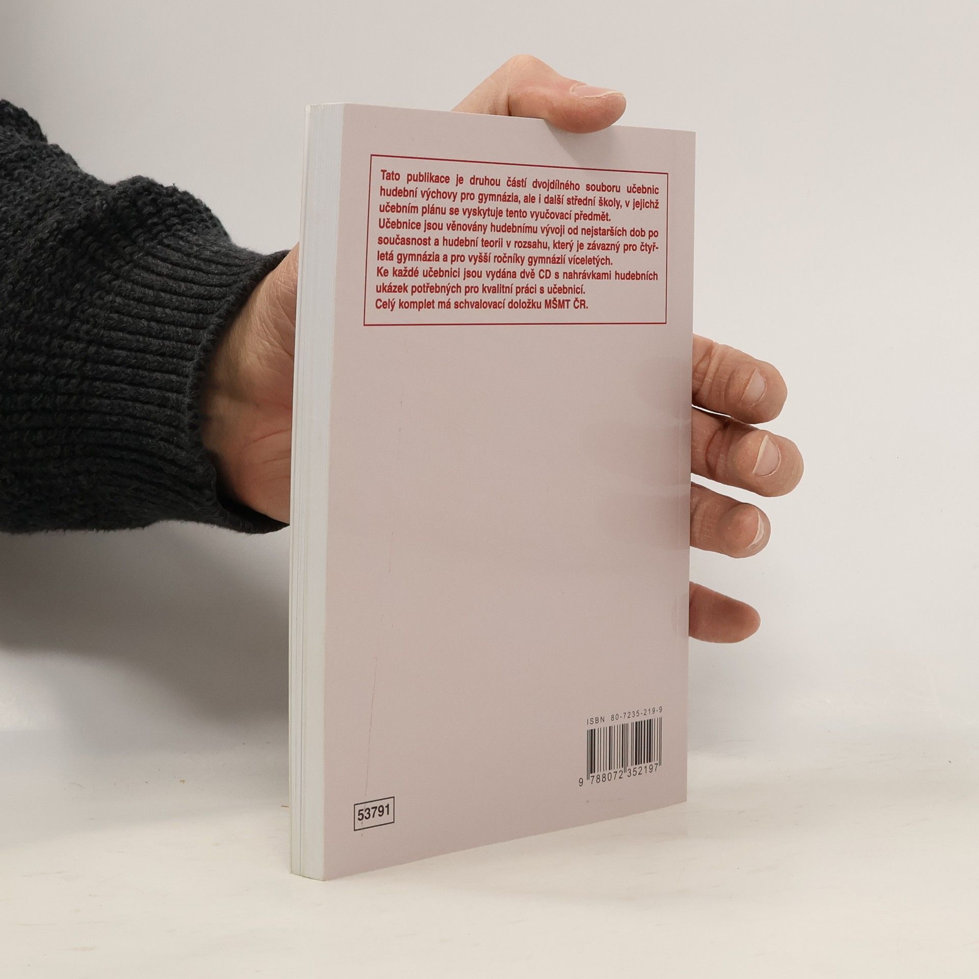 Učebnice je druhou částí dvoudílného kompletu, jenž vychází z aktuálních osnov gymnázií. V promyšlené struktuře se věnuje vývoji hudby, nabízí náměty k činnostem s uplatněním poznatků hudební teorie a obsahuje i notový materiál ke zpěvu. Každý díl doplňují dva kompaktní disky s nahrávkami hudebních ukázek potřebných k práci s učebnicemi. Svým pojetím učebnice navazuje na řadu učebnic pro 6.-9. ročník ZŠ a pro nižší ročníky víceletých gymnázií.