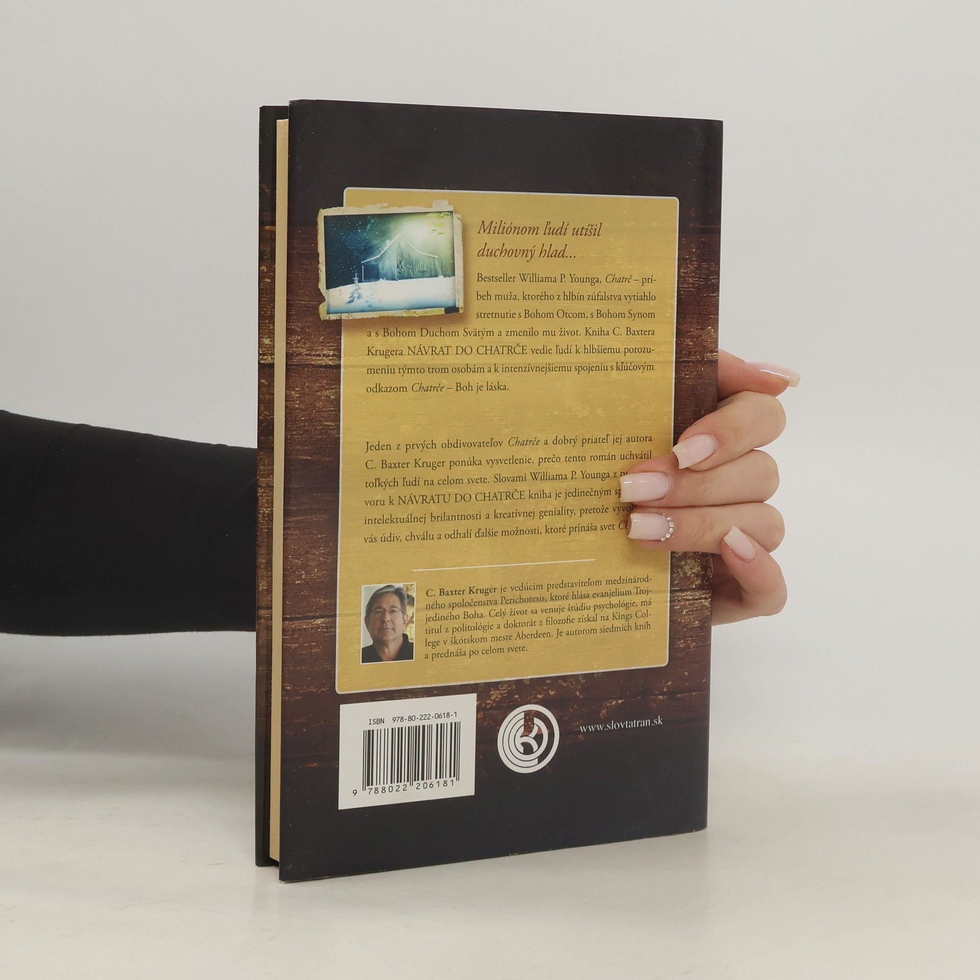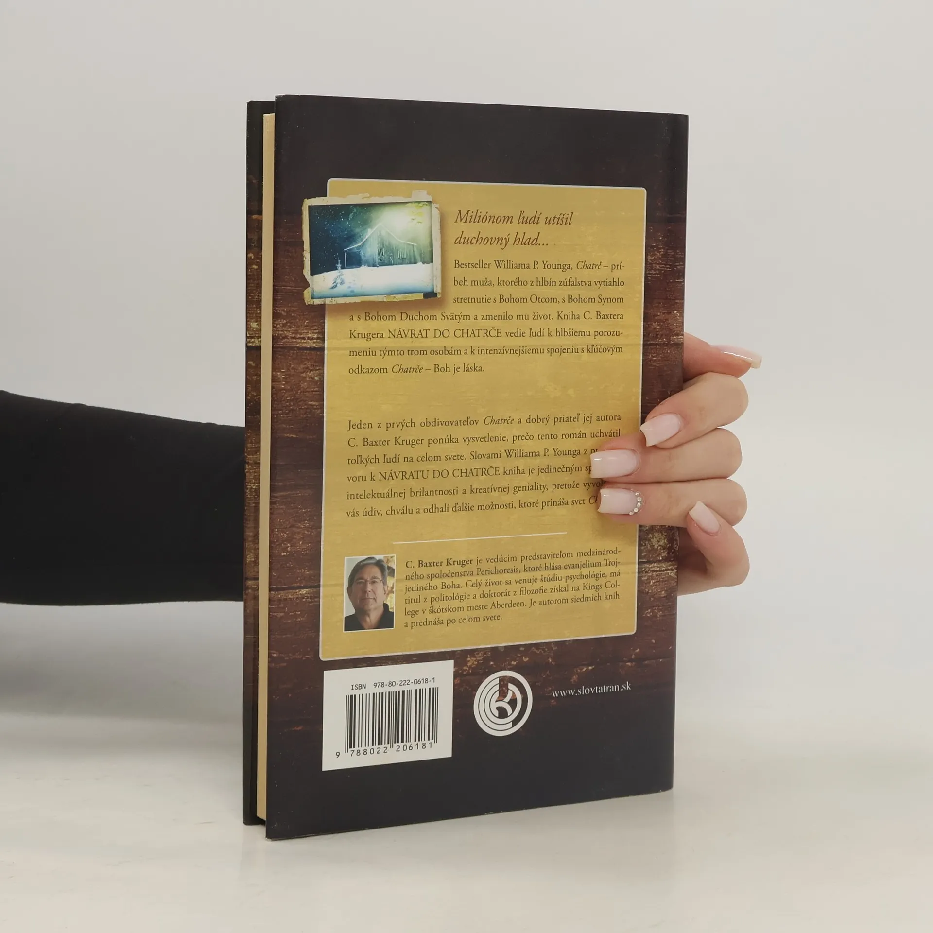 Miliónom ľudí utíšil duchovný hlad... Bestseller Williama P. Younga, Chatrč - príbeh muža, ktorého z hlbín zúfalstva vytiahlo stretnutie s Bohom Otcom, s Bohom Synom a s Bohom Duchom Svätým a zmenilo mu život. Kniha C. Baxtera Krugera NÁVRAT DO CHATRČE vedie ľudí k hlbšiemu porozumeniu týmto trom osobám k intenzívnejšiemu spojeniu s kľúčovým odkazom Chatrče - Boh je láska. Jeden z prvých obdivovateľov Chatrče a dobrý priateľ jej autora C. Baxter Kruger ponúka vysvetlenie, prečo tento román uchvátil toľkých ľudí na celom svete. Slovami Williama P. Younga z predhovoru k NÁVRATU DO CHATRČE kniha je jedinečným spojením intelektuálnej brilantnosti a kreatívnej geniality, pretože vyvolá vo vás údiv, chválu a odhalí ďalšie možnosti, ktoré prináša svet Chatrče. C. Baxter Kruger je vedúcim predstaviteľom medzinárodného spoločenstva Perichoresis, ktoré hlása evanjelium Trojjediného Boha. Celý život sa venuje štúdiu psychológie, má titul z politológie a doktorát z filozofie získal na Kings College v škótskom meste Aberdeen. Je autorom siedmich kníh a prednáša po celom svete.