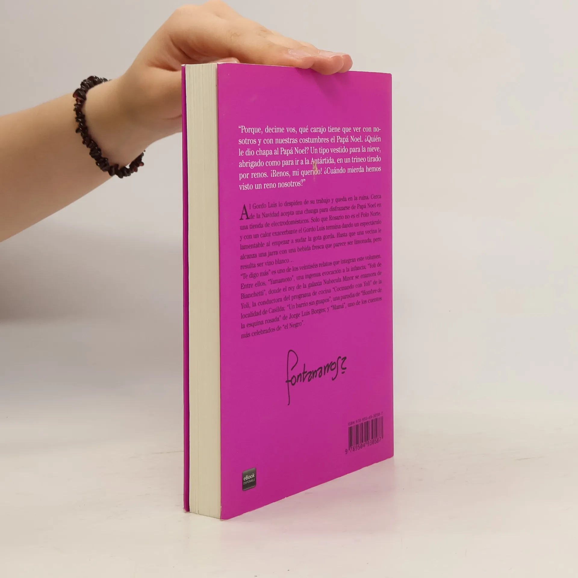 Al Gordo Luis lo despiden de su trabajo y queda en la ruina. Cerca de la Navidad acepta una changa para disfrazarse de Papá Noel en una tienda de electrodomésticos. Solo que Rosario no es el Polo Norte, y con un calor exacerbante el Gordo Luis termina dando un espectáculo lamentable al empezar a sudar la gota gorda. Hasta que una vecina le alcanza una jarra con una bebida fresca que parece ser limonada, pero resulta ser vino blanco... "Te digo más" es uno de los veintiséis relatos que integran este volumen. Entre ellos, "Yamamoto", una ingenua evocación a la infancia; "Yoli de Bianchetti", donde el rey de la galaxia Nubecula Minor se enamora de Yoli, la conductora del programa de cocina "Cocinando con Yoli" de la localidad de Casilda; "Un barrio sin guapos", una parodia de "Hombre de la esquina rosada" de Jorge Luis Borges; y "Mamá", uno de los cuentos más celebrados de "el Negro".