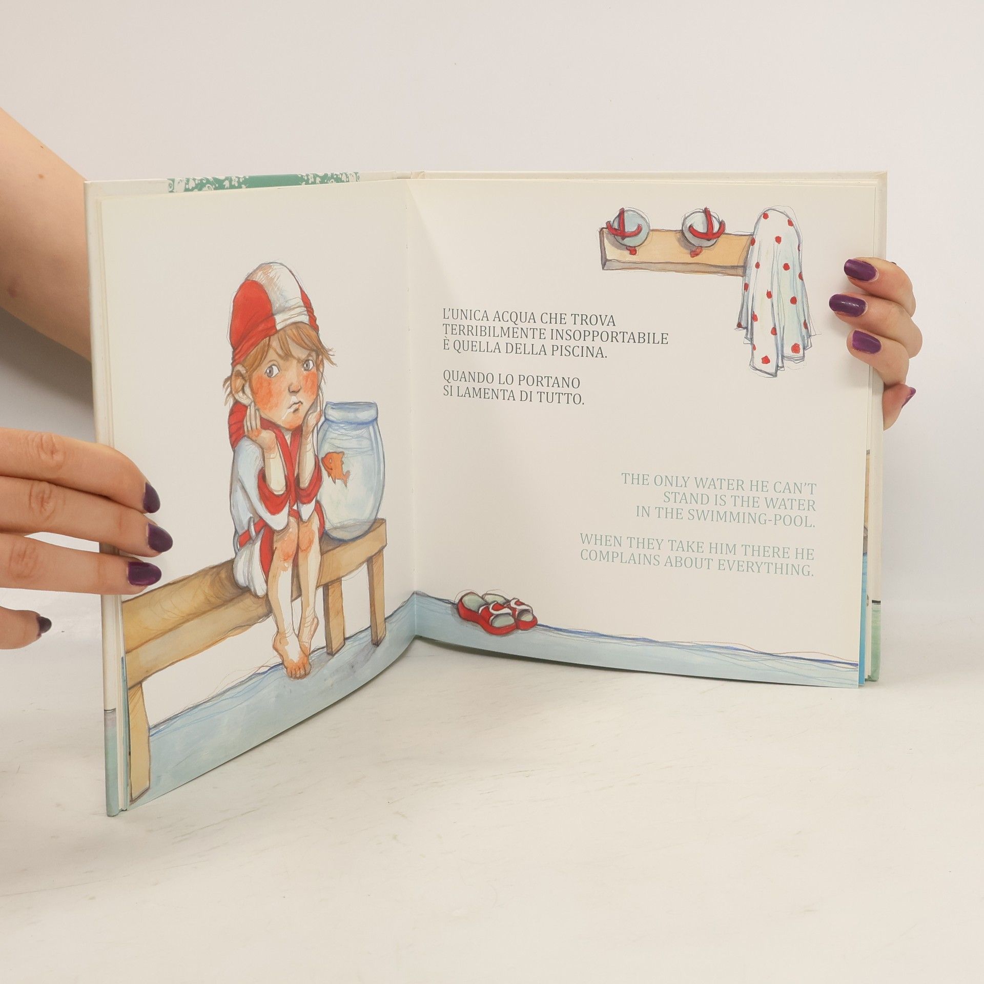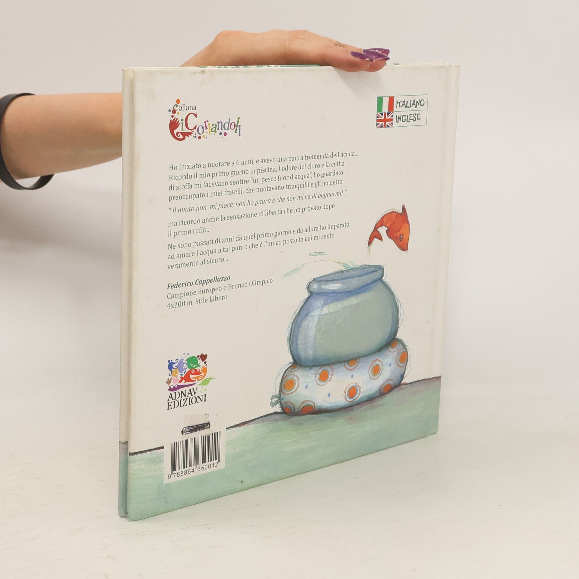 Quanti bambini sono terrorizzati all'idea di entrare in acqua? Questa è la storia della famiglia Sguazzo, formata da papà Ettore, mamma Elisabetta, formidabili campioni olimpionici di nuoto, e dal loro figlio Giacomo con il suo inseparabile pesciolino rosso di nome Scaglia. Giacomo ha paura dell'acqua e non ama la piscina mentre il pesce Scaglia non desidera altro che potersi tuffare... Testo in Italiano e Inglese con traduzione in Francese, Spagnolo, Russo, Tedesco e Arabo