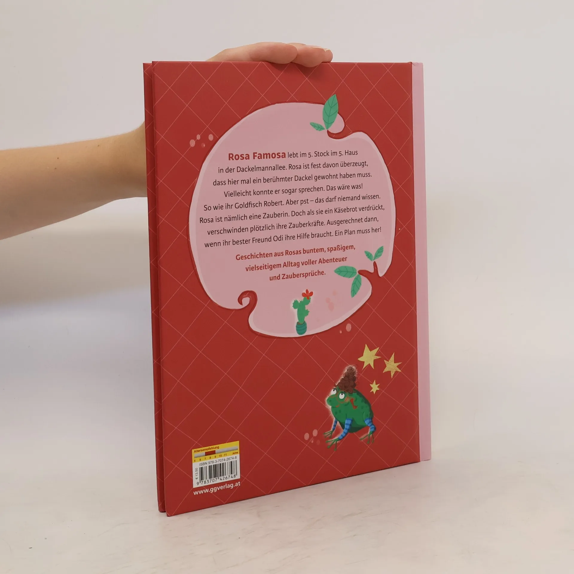 Rosa Famosa lebt im 5. Stock im 5. Haus in der Dackelmann-Allee. Rosa ist fest davon überzeugt, dass hier mal ein berühmter Dackel gewohnt haben muss. Vielleicht konnte er sogar sprechen. Das wäre was! So wie ihr Goldfisch Robert. Aber pst – das darf niemand wissen. Rosa ist nämlich eine Zauberin. Doch als sie ein Käsebrot verdrückt, verschwinden plötzlich ihre Zauberkräfte. Ausgerechnet dann, wenn ihr bester Freund Odi ihre Hilfe braucht. Ein Plan muss her! Geschichten aus Rosas buntem Alltag voller Abenteuer. Autoin Katharina Fohringer-Hackl lädt uns ein in den zauberhaften Alltag von Zauberin Rosa Famosa - Bunt, witzig, spritzig und ein bisschen frech illustriert Ulrike Halvax.