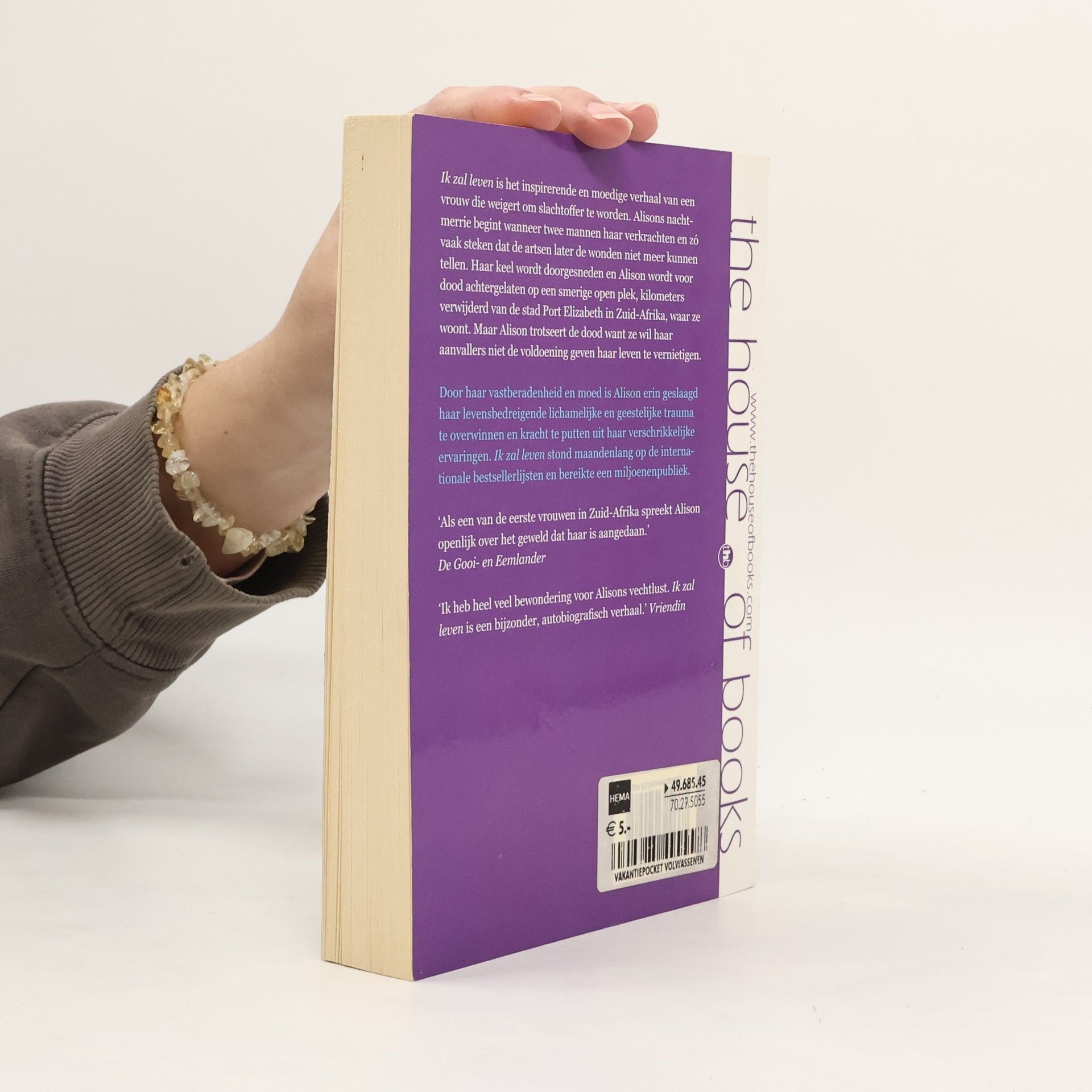 Het relaas van een jonge blanke Zuid-Afrikaanse vrouw die op een avond verkracht wordt door twee mannen (beiden blank) en zo vaak wordt gestoken met een mes dat het een wonder is dat ze het overleefde. Daarna stelde zij haar leven in dienst van de bestrijding van geweld tegen vrouwen en het organiseren van adequate hulp en ondersteuning voor verkrachte vrouwen. Ze geeft veel spreekbeurten en heeft inmiddels een heldenstatus bereikt. Dit boek is een gedetailleerde weergave van de ervaringen van het slachtoffer en andere betrokkenen tijdens en na de verkrachting, inclusief de rechtszitting en veroordeling van de daders. Per hoofdstuk wisselt het perspectief tussen verschillende betrokkenen waaronder het slachtoffer, de voorbijganger die haar aantreft aan de kant van de weg, haar moeder, vader, een behandelend arts, een politie-agent en haar echtgenoot. Een goed geschreven, inspirerend en moedig verhaal van een vrouw die geen slachtoffer wil zijn. Een hart onder riem voor vrouwen met soortgelijke ervaringen.