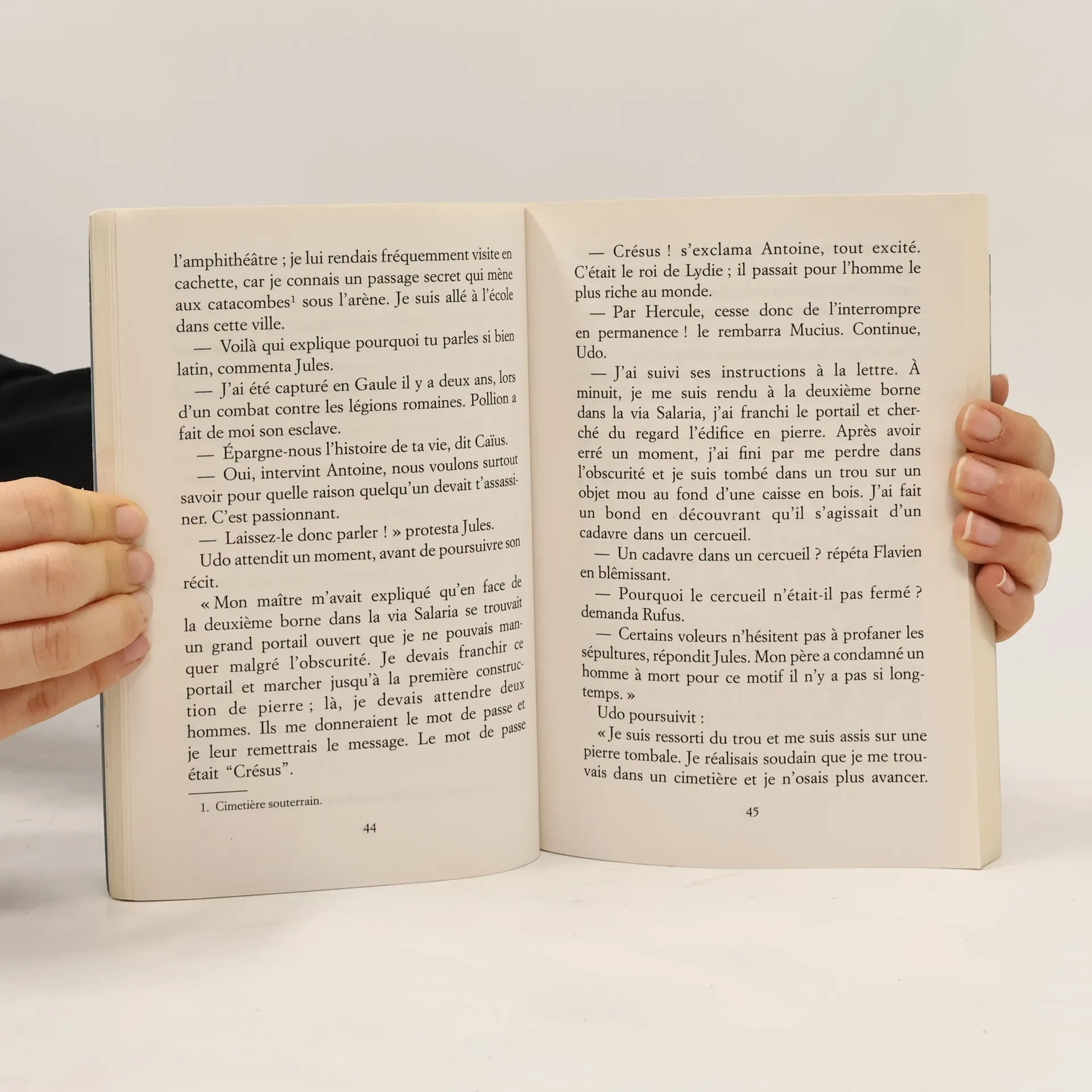 Quand Caius et ses amis offrent un esclave a leur professeur, ils sont loin d'imaginer que cela va les embarquer dans une affreuse affaire d'assassinat ! Un etrange message secret les conduira tour a tour dans un cimetiere, une fosse aux lions, un passage secret conduisant a un souterrain... Menaces de toute parts, poursuivis par un terrible gladiateur borgne, comment reussiront-ils a dejouer les assasins ?