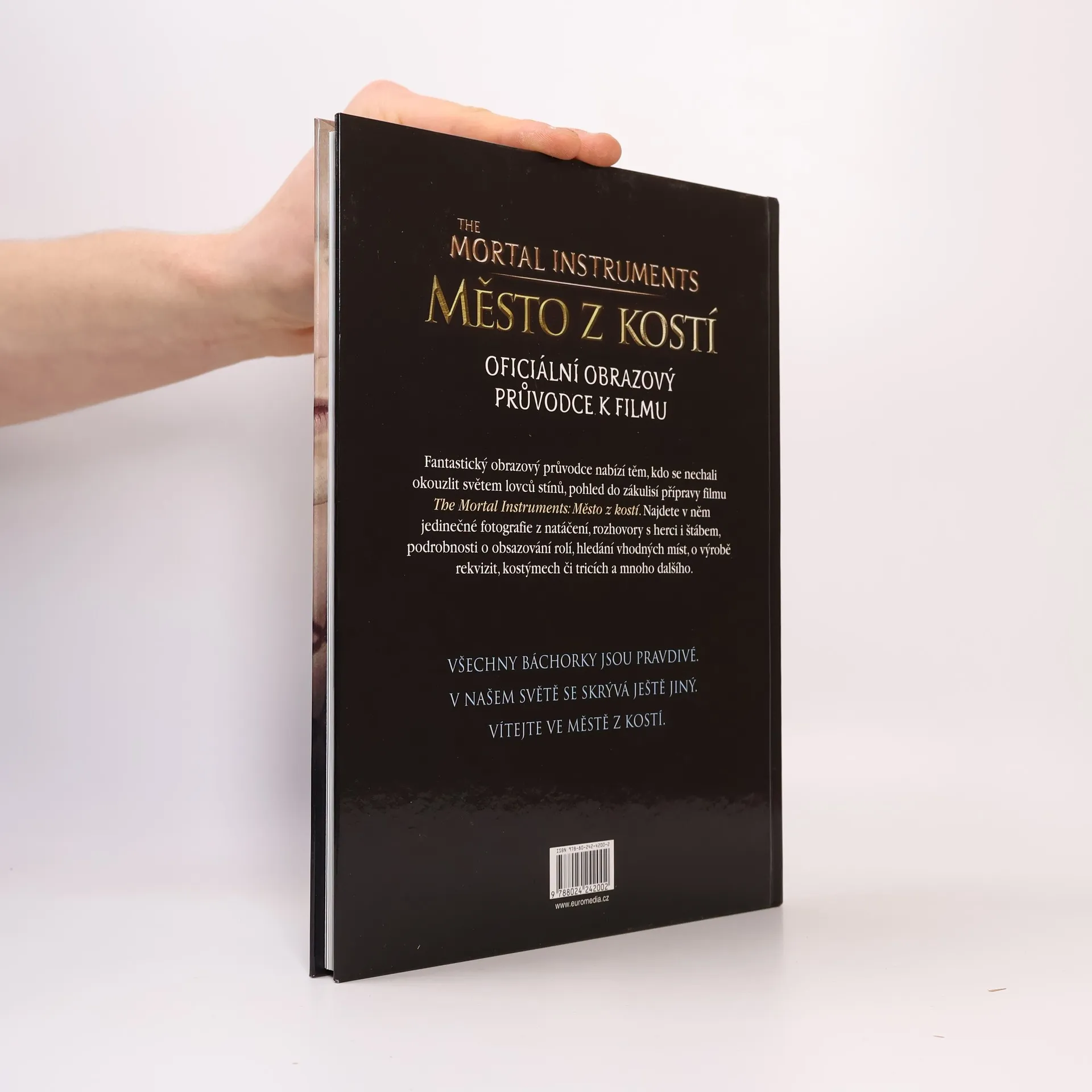 Fantastický obrazový průvodce nabízí těm, kdo se nechali okouzlit světem lovců stínů, pohled do zákulisí přípravy filmu The Mortal Instruments: Město z kostí. Najdete v něm jedinečné fotografie z natáčení, rozhovory s herci i štábem, podrobnosti o obsazování rolí, hledání vhodných míst, o výrobě rekvizit, kostýmech či tricích a mnoho dalšího.