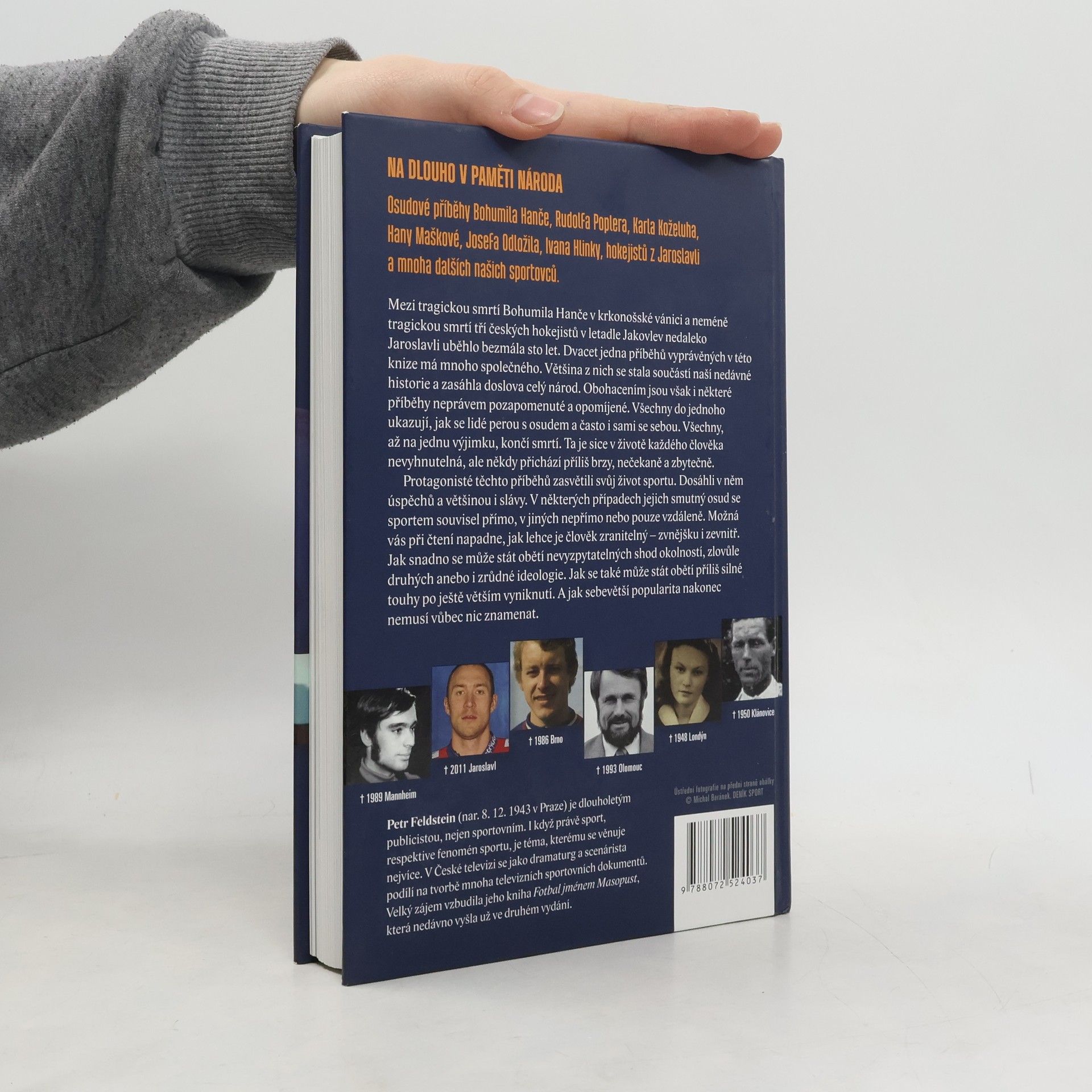 Na dlouho v paměti národa Osudové příběhy Bohumila Hanče, Rudolfa Poplera, Karla Koželuha, Hany Maškové, Josefa Odložila, Ivana Hlinky, hokejistů z Jaroslavli i mnoha dalších našich sportovců. Mezi tragickou smrtí Jiřího Hanče v krkonošské vánici a neméně tragickou smrtí tří českých hokejistů v letadle nedaleko Jaroslavle uběhlo bezmála sto let. Dvacet jedna příběhů vyprávěných v této knize má mnoho společného. Většina z nich se stala součástí naší nedávné historie a zasáhla doslova celý národ. Obohacením jsou však i některé příběhy neprávem pozapomenuté a dosud opomíjené. Všechny do jednoho ukazují, jak se lidé perou s osudem a často i sami se sebou. Všechny, až na jednu výjimku, končí smrtí. Ta je sice v životě každého člověka nevyhnutelná, ale někdy přichází příliš brzy, nečekaně a zbytečně. Protagonisté těchto příběhů zasvětili svůj život sportu. Dosáhli v něm úspěchů a většinou i slávy. V některých případech jejich smutný osud se sportem, jemuž se věnovali, souvisel přímo, v jiných nepřímo. Někdy s ním nesouvisel vůbec nebo pouze vzdáleně. Možná vás při čtení napadne, jak lehce je člověk zranitelný – zvnějšku i zevnitř. Jak snadno se může stát obětí nevyzpytatelných shod okolností, zlovůle druhých anebo, v totalitních poměrech, i zrůdné ideologie. Jak se také může stát obětí příliš silné touhy po ještě větším vyniknutí. A jak sebevětší popularita nakonec nemusí vůbec nic znamenat.