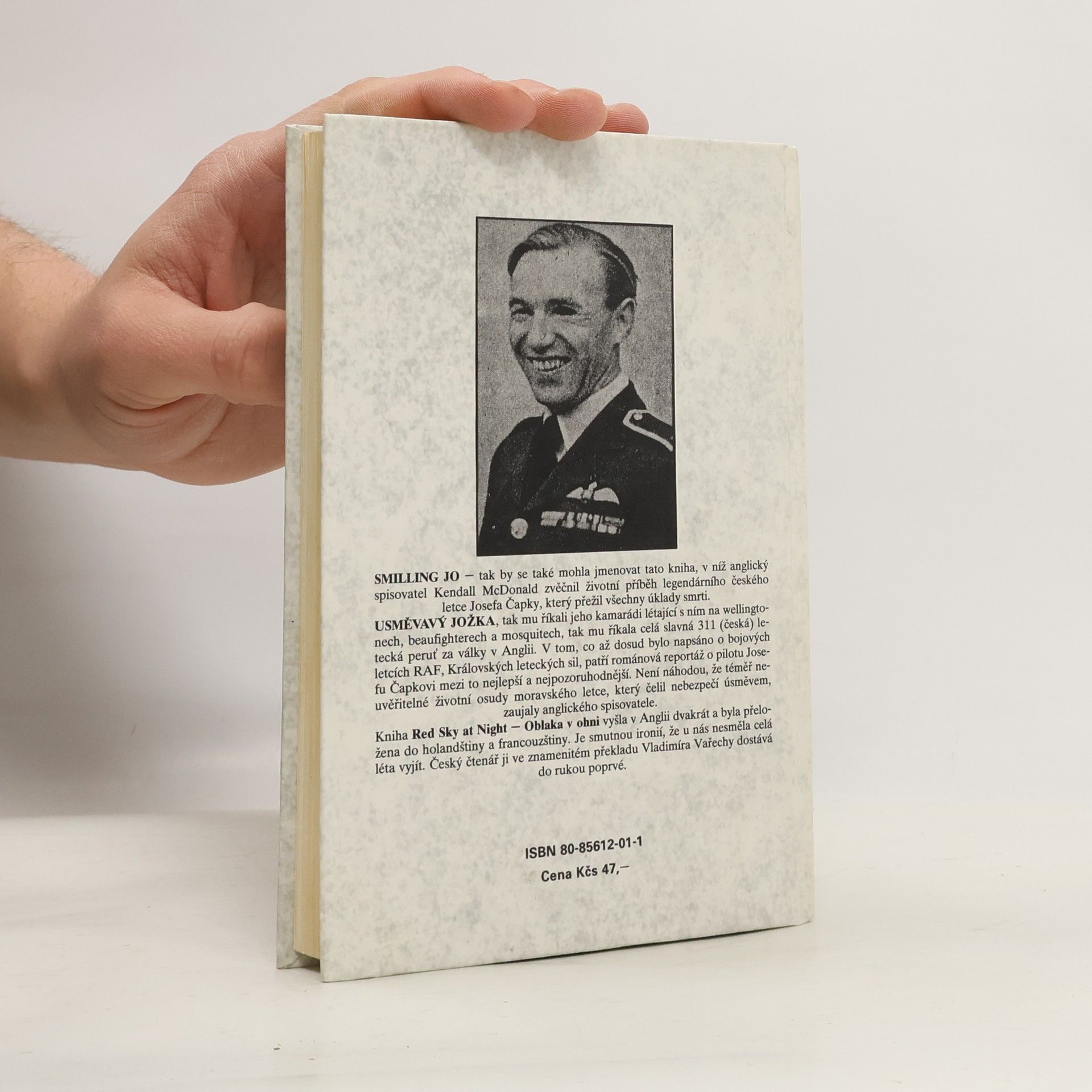 Smilling Jo - tak se taky mohla jmenovat knížka, v níž anglický spisovatel Kendall McDonald zvěčnil životní příběh legendárního českého letce Josefa Čapky, který přežil všechny úklady smrti. Usměvavý Jožka, tak mu říkali jeho kamarádi létající s ním na Wellingtonech, Beaufighterech a Mosquitech, tak mu říkala celá slavná 311. (česká) letecká peruť za války v Anglii. V tom, co až dosud bylo napsáno o bojových letcích RAF, Královských leteckých sil, patří románová reportáž o pilotu Josefu Čapkovi mezi to nejlepší a nejpozoruhodnější. Není náhodou, že téměř neuvěřitelné životní osudy moravského letce, který čelil nebezpečí úsměvem, zaujaly anglického spisovatele.