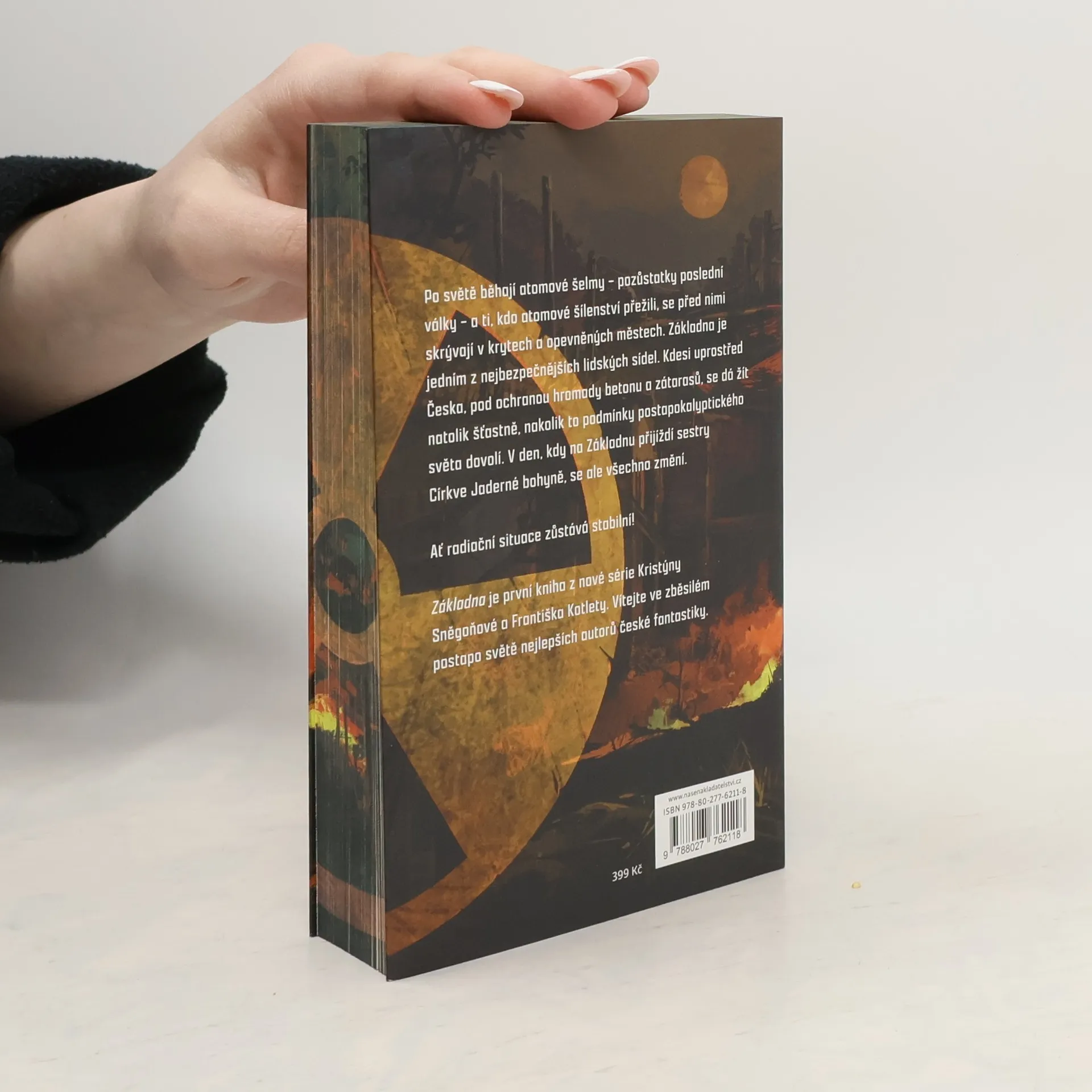 Po světě běhají atomové šelmy – zmutovaní lidé, pozůstatky poslední války –, a ti, kdo atomové šílenství přežili bez mutací, se před nimi skrývají v krytech a opevněných městech. Základna je jedním z nejbezpečnějších lidských obydlí. Kdesi uprostřed Česka, pod ochranou hromady betonu a zátarasů, se dá žít natolik šťastně, nakolik to podmínky postapokalyptického světa dovolí. V den, kdy na Základnu přijíždí sestry Církve Jaderné bohyně, se ale všechno změní. Ať radiační situace zůstává stabilní! Základna je první kniha z nové série Kristýny Sněgoňové a Františka Kotlety. Vítejte ve zběsilém postapo světě nejlepších autorů české fantastiky.