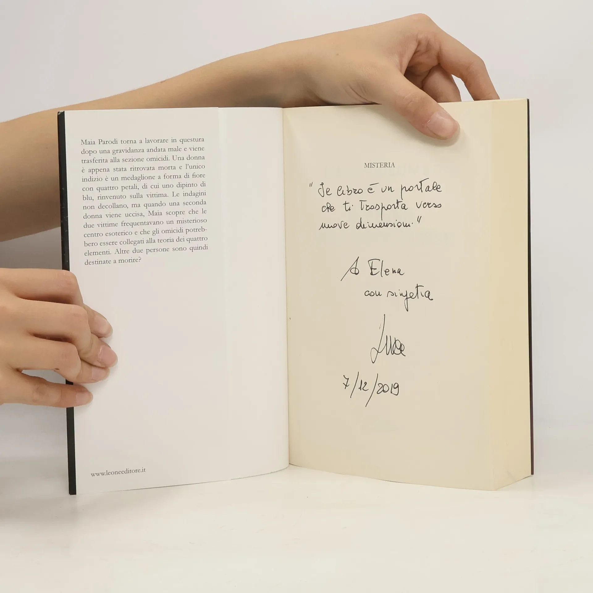 Maia Parodi torna a lavorare in questura dopo una gravidanza andata male e viene trasferita alla sezione omicidi. Una donna è appena stata ritrovata morta e l'unico indizio è un medaglione a forma di fiore con quattro petali, di cui uno dipinto di blu, rinvenuto sulla vittima. Le indagini non decollano, ma quando una seconda donna viene uccisa, Maia scopre che le due vittime frequentavano un misterioso centro esoterico e che gli omicidi potrebbero essere collegati alla teoria dei quattro elementi. Altre due persone sono quindi destinate a morire?