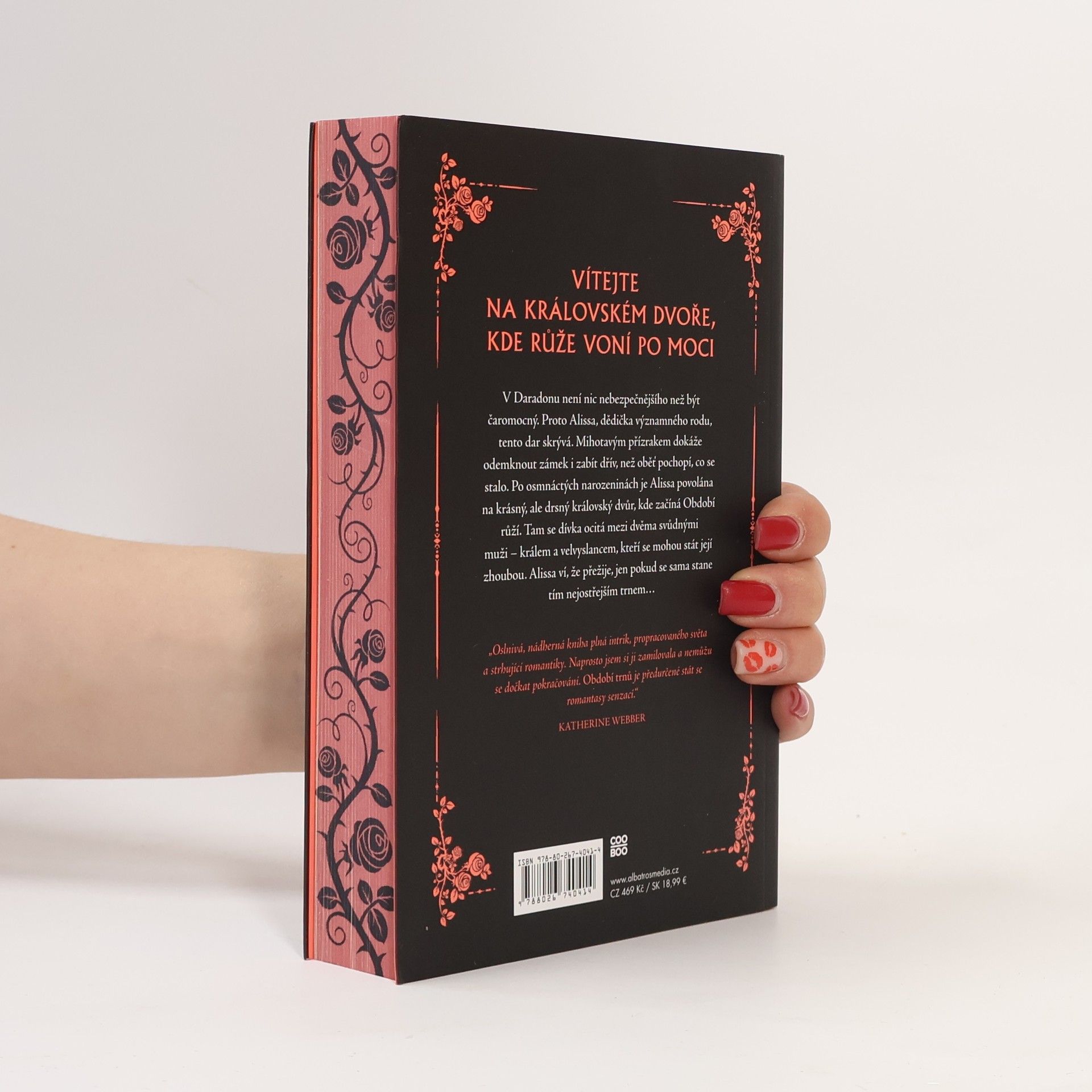 Nejočekávanější romantasy debut roku 2025. V Daradonu není nic nebezpečnějšího než být čaromocný. Proto Alissa, dědička významného rodu, tento dar skrývá. Mihotavým přízrakem dokáže odemknout zámek i zabít dřív, než oběť pochopí, co se stalo. Po osmnáctých narozeninách je Alissa povolána na krásný, ale drsný královský dvůr, kde začíná Období růží. Tam se ocitá mezi dvěma svůdnými muži – králem a velvyslancem, kteří se mohou stát její zhoubou. Alissa ví, že přežije, jen pokud se sama stane tím nejostřejším trnem…
