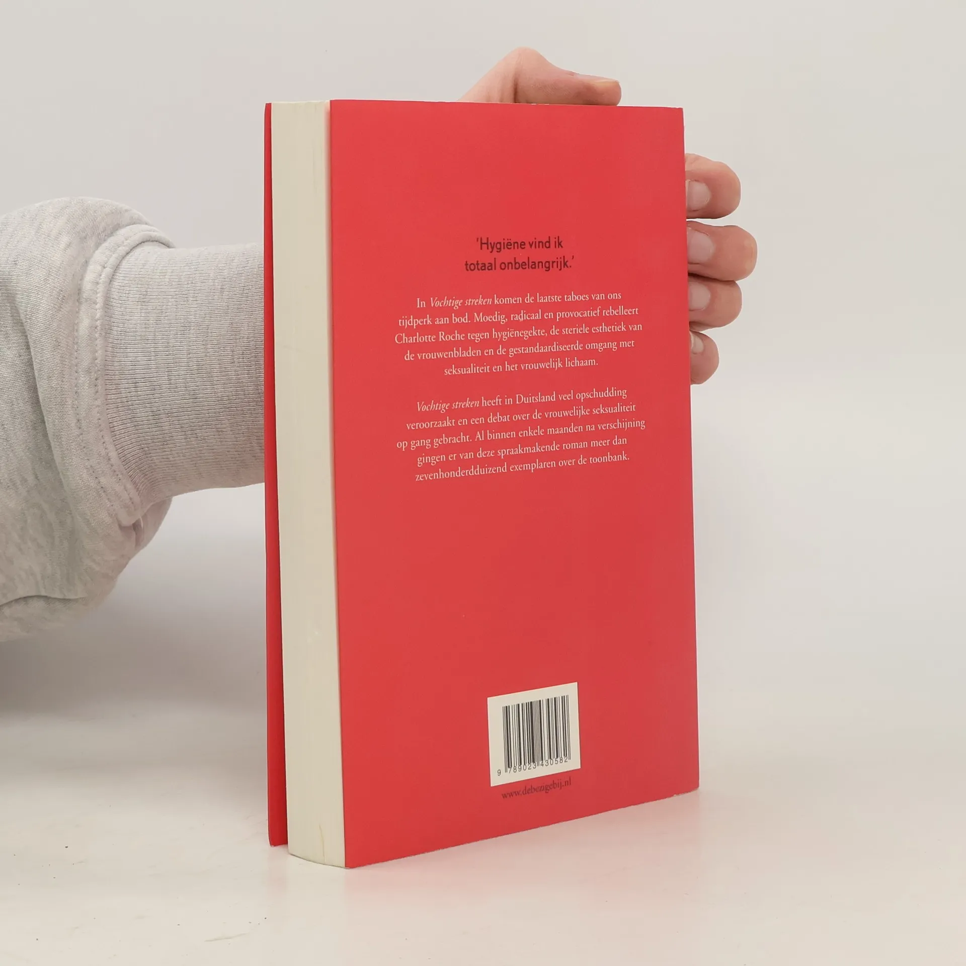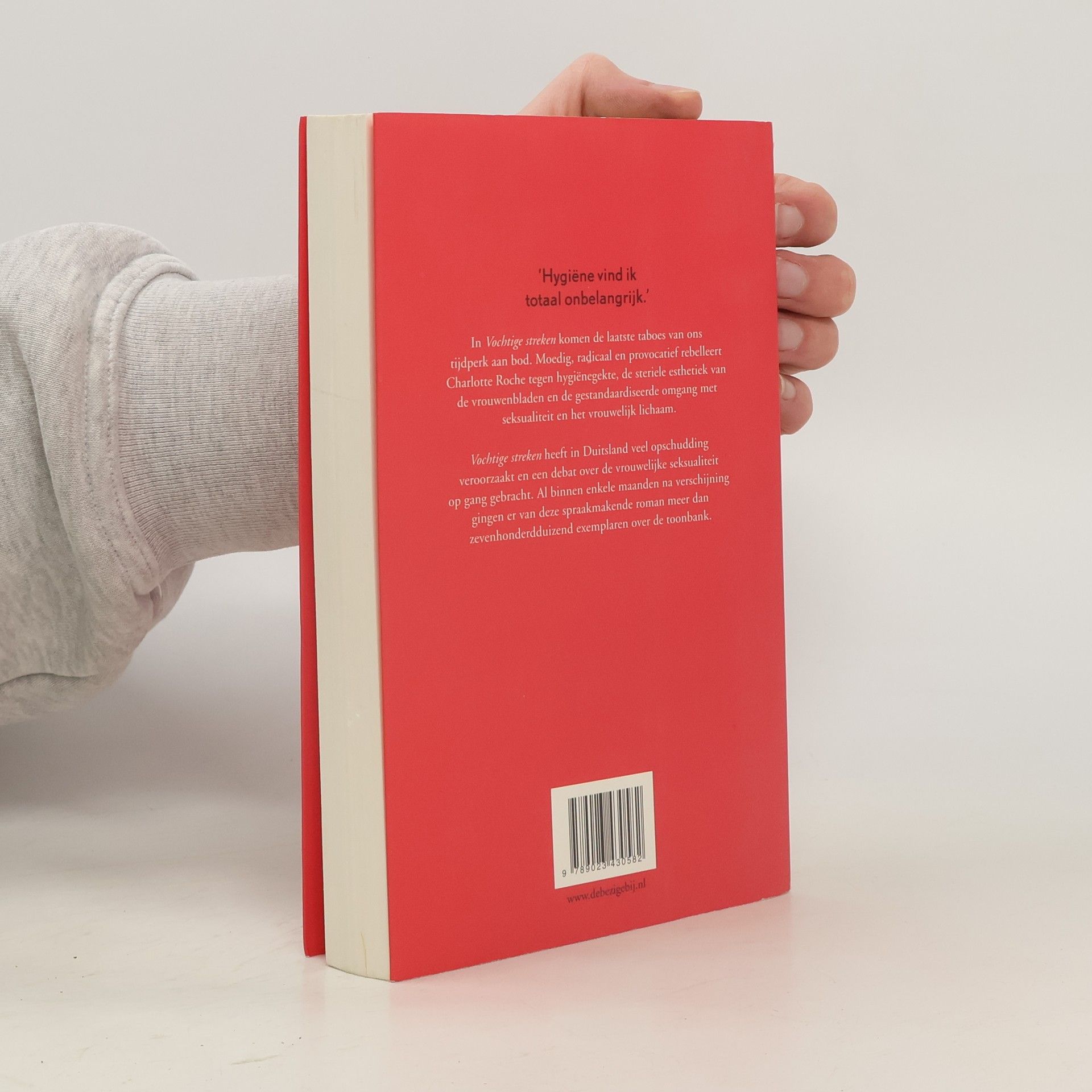 Charlotte Roche schreef met Vochtige streken een uitgesproken roman, met in de hoofdrol een even openhartige als kwetsbare heldin. Vooruitstrevend en expliciet, maar ook dapper en ontroerend. ‘Hygiëne wordt door mij met een kleine letter geschreven.’ Na een mislukte poging om haar intieme delen te scheren, ligt de achttienjarige Helen op de afdeling interne geneeskunde van het Maria Bijstand Ziekenhuis. Ze koestert de hoop dat haar gescheiden ouders aan haar ziekbed nader tot elkaar komen en met dit doel voor ogen probeert zij haar verblijf in het ziekenhuis zo lang mogelijk te rekken. Omgeven door medische instrumenten en zoemende machines overdenkt ze op onverbloemde wijze de uitzonderlijke gaven van het vrouwelijk lichaam. In Vochtige streken komen de laatste taboes van ons tijdperk aan bod. Moedig, radicaal en provocatief rebelleert Charlotte Roche tegen hygiënegekte, de steriele esthetiek van de vrouwenbladen en de gestandaardiseerde omgang met seksualiteit en het vrouwelijk lichaam. Vochtige streken heeft in Duitsland veel opschudding veroorzaakt en een debat over de vrouwelijke seksualiteit op gang gebracht. Al binnen enkele maanden na verschijning gingen er van deze spraakmakende roman meer dan zevenhonderdduizend exemplaren over de toonbank.