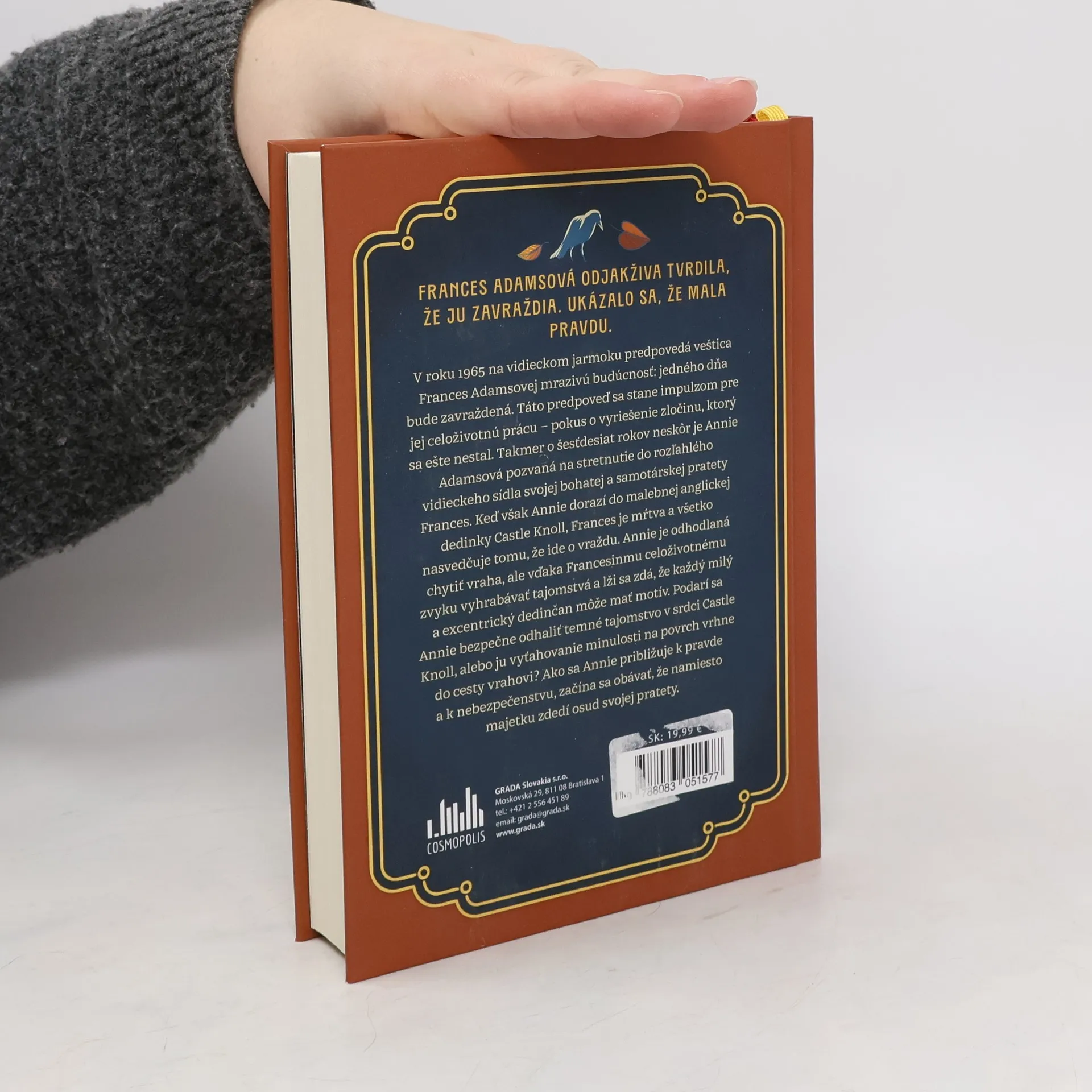 Frances Adamsová odjakživa tvrdila, že ju zavraždia. Ukázalo sa, že mala pravdu. V roku 1965 na vidieckom jarmoku predpovedá veštica Frances Adamsovej mrazivú budúcnosť: jedného dňa bude zavraždená. Táto predpoveď sa stane impulzom pre jej celoživotnú prácu – pokus o vyriešenie zločinu, ktorý sa ešte nestal. Takmer o šesťdesiat rokov neskôr je Annie Adamsová pozvaná na stretnutie do rozľahlého vidieckeho sídla svojej bohatej a samotárskej pratety Frances. Keď však Annie dorazí do malebnej anglickej dedinky Castle Knoll, Frances je mŕtva a všetko nasvedčuje tomu, že ide o vraždu. Annie je odhodlaná chytiť vraha, ale vďaka Francesinmu celoživotnému zvyku vyhrabávať tajomstvá a lži sa zdá, že každý milý a excentrický dedinčan môže mať motív. Podarí sa Annie bezpečne odhaliť temné tajomstvo v srdci Castle Knoll, alebo ju vyťahovanie minulosti na povrch vrhne do cesty vrahovi? Ako sa Annie približuje k pravde a k nebezpečenstvu, začína sa obávať, že namiesto majetku zdedí osud svojej pratety.