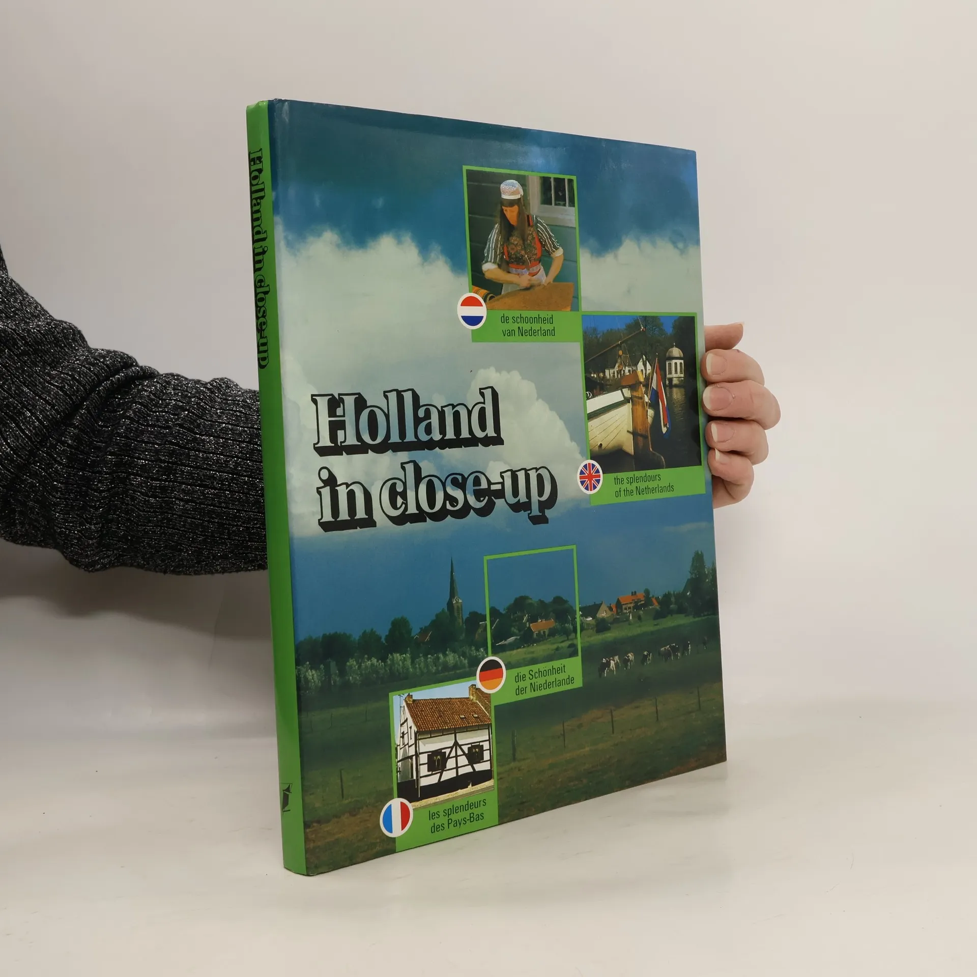 Een foto-tekstboek in vier talen - Nederlands, Duits-Engels-Frans -, waarin door middel van een serie uitstekende kleurenfoto's, met een korte, zakelijke toelichting en een afzonderlijk tekstgedeelte - in afwijkende papiersoort - een unieke "close-up" wordt gegeven van het land beneden de zeespiegel, over de mensen die er wonen, over het land dat zijn ontgonnen en bebouwd hebben en waarin zij hun industrieen vestigden. Land, water, polders, kerken, torens, kastelen, dorpen en steden, molens, boerderijen, industrie en nijverheid, dat alles komt aan de orde. In een speciaal gedeelte wordt op onderdelen, die karakteristiek zijn, zoals klederdrachten, grachten, beeldende kunst, inpolderingen enz. dieper ingegaan. Een fraai uitgevoerd boek, dat op levendige wijze een geheel apart inzicht geeft in ons land en de wijze waarop daarin wordt gewoond en gewerkt. Het foto-tekstgedeelte telt 112 pagina's; dat met speciale tekst 40 pagina's. Een lijst van de grootste ondernemingen in Nederland en een uitvoerige index besluiten het boek. (NBD|Biblion recensie, J. Vos.)