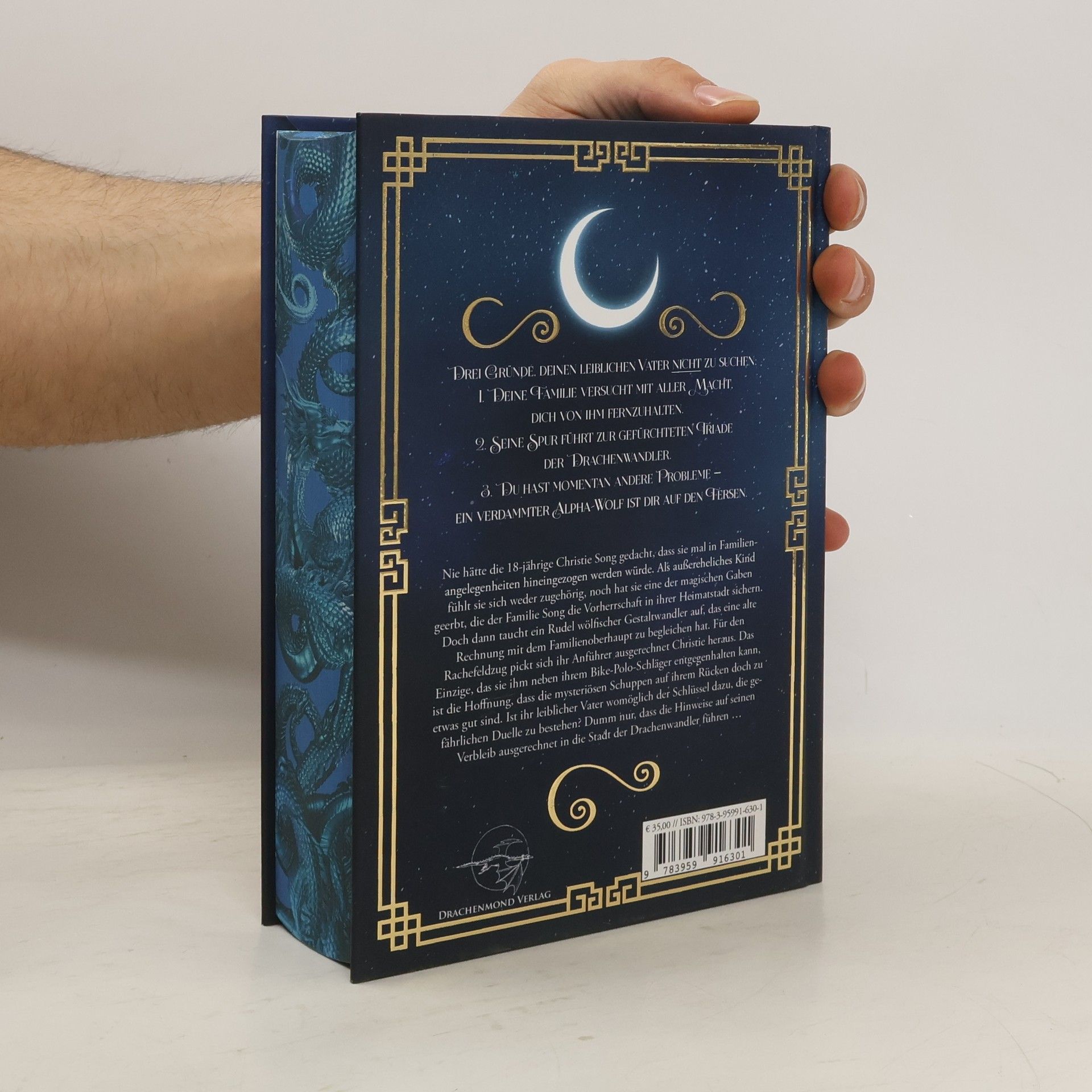Drei Gründe, deinen leiblichen Vater nicht zu suchen: 1. Deine Familie versucht mit aller Macht, dich von ihm fernzuhalten. 2. Seine Spur führt zur gefürchteten Triade der Drachenwandler. 3. Du hast momentan andere Probleme – ein verdammter Alpha-Wolf ist dir auf den Fersen. Nie hätte die 18-jährige Christie Song gedacht, dass sie mal in Familienangelegenheiten hineingezogen werden würde. Als außereheliches Kind fühlt sie sich weder zugehörig, noch hat sie eine der magischen Gaben geerbt, die der Familie Song die Vorherrschaft in ihrer Heimatstadt sichern. Doch dann taucht ein Rudel wölfischer Gestaltwandler auf, das eine alte Rechnung mit dem Familienoberhaupt zu begleichen hat. Für den Rachefeldzug pickt sich ihr Anführer ausgerechnet Christie heraus. Das Einzige, das sie ihm neben ihrem Bike-Polo-Schläger entgegenhalten kann, ist die Hoffnung, dass die mysteriösen Schuppen auf ihrem Rücken doch zu etwas gut sind. Ist ihr leiblicher Vater womöglich der Schlüssel dazu, die gefährlichen Duelle zu bestehen? Dumm nur, dass die Hinweise auf seinen Verbleib ausgerechnet in die Stadt der Drachenwandler führen …