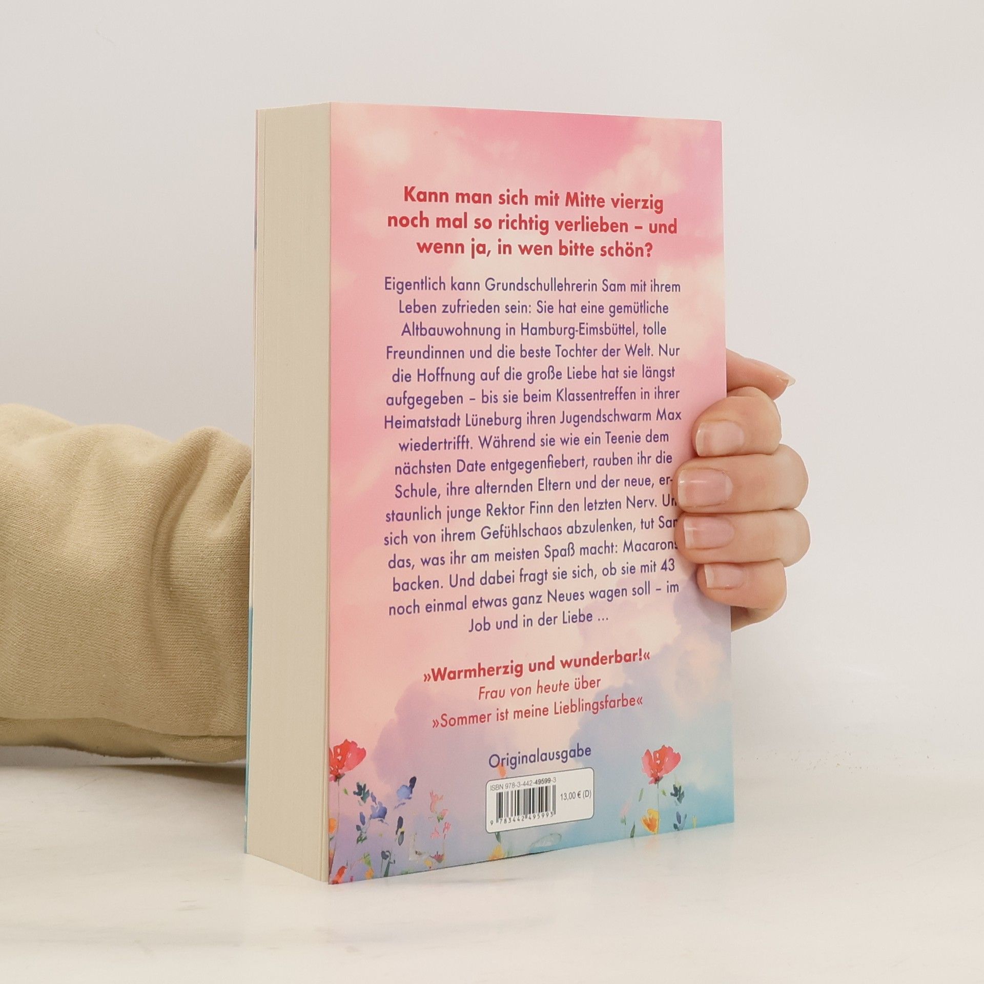Kann man sich mit Mitte vierzig noch mal so richtig verlieben – und wenn ja, in wen bitte schön? Eigentlich kann Grundschullehrerin Sam mit ihrem Leben zufrieden sein: Sie hat eine gemütliche Altbauwohnung in Hamburg-Eimsbüttel, tolle Freundinnen und die beste Tochter der Welt. Nur die Hoffnung auf die große Liebe hat sie längst aufgegeben – bis sie beim Klassentreffen in ihrer Heimatstadt Lüneburg ihren Jugendschwarm Max wiedertrifft. Während sie wie ein Teenie dem nächsten Date entgegenfiebert, rauben ihr die Schule, ihre alternden Eltern und der neue, erstaunlich junge Rektor Finn den letzten Nerv. Um sich von ihrem Gefühlschaos abzulenken, tut Sam das, was ihr am meisten Spaß macht: Macarons backen. Und dabei fragt sie sich, ob sie mit 43 noch einmal etwas ganz Neues wagen soll – im Job und in der Liebe … Ein humorvoller und herrlich romantischer Roman über Liebe, Neuanfänge und das große Glück. Niemand versteht Frauen so gut wie SPIEGEL-Bestsellerautorin und Bloggerin Claudia Schaumann (WAS FÜR MICH). »Ein Roman wie ein perfekter Sommertag: heiß, heiter und ganz viele große Gefühle.« Julia Karnick »Warmherzig und wunderbar!« Frau von heute (über »Sommer ist meine Lieblingsfarbe«) »Ein sehnsuchtsvoll-schöner Roman über ungerade Lebens- und Liebeswege.« Karla Paul (über »Sommer ist meine Lieblingsfarbe«)