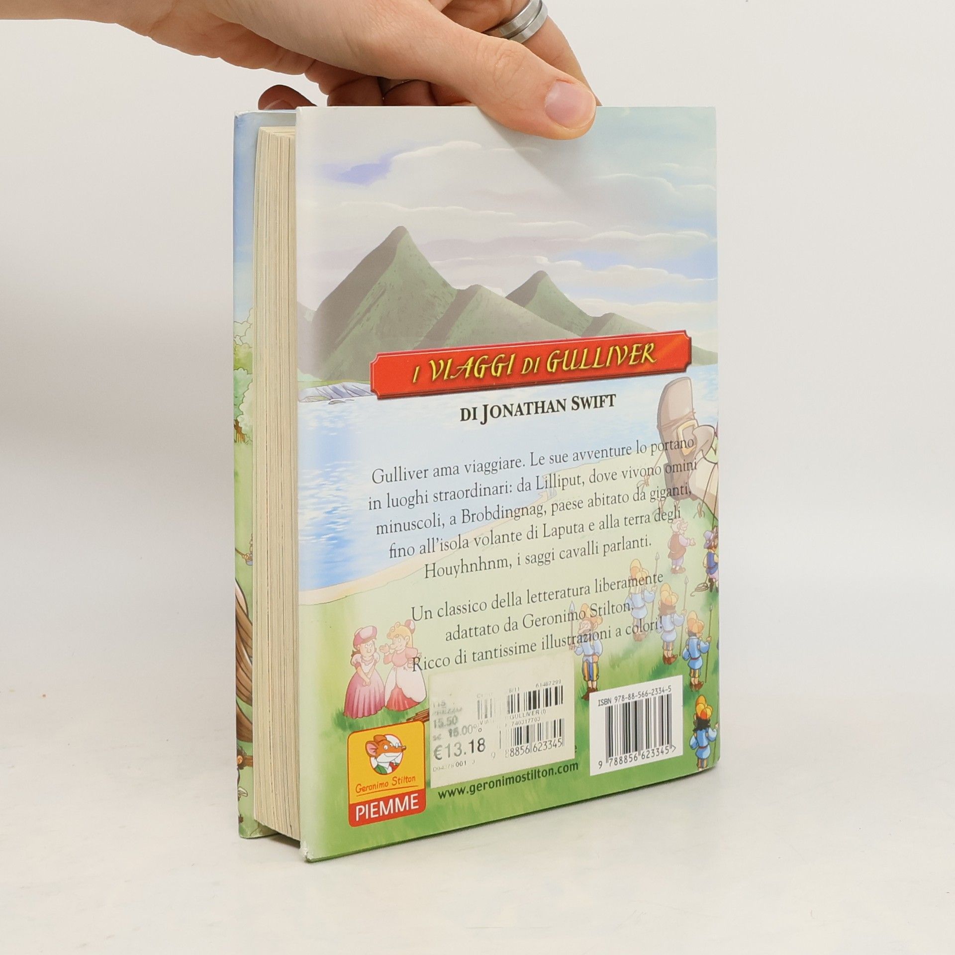 Lemuel Gulliver, nonostante sia un medico, è felice solo quando viaggia per mare. La sete di avventura lo porta a scoprire mondi fantastici, popolati da creature mai viste. Tra i minuscoli Lillipuziani, i giganti di Brobdingnag, gli scienziati di Laputa e i cavalli Houyhnhnm, Gulliver vive esperienze indimenticabili, scoprendo di ciascun popolo vizi e virtù. Un classico della letteratura, liberamente adattato da Geronimo Stilton per i suoi lettori. Età di lettura: da 7 anni.