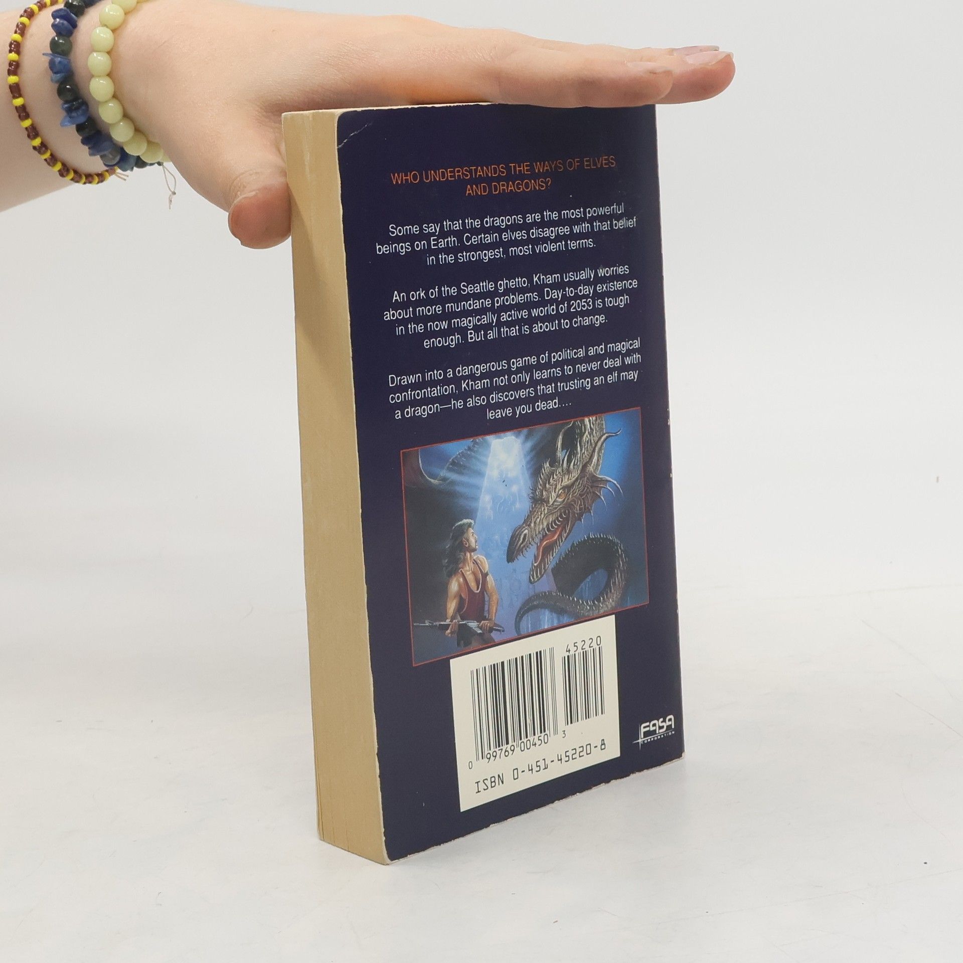 WHO UNDERSTANDS THE WAYS OF ELVES AND DRAGONS?Some say that the dragons are the most powerful beings on Earth. Certain elves disagree with that belief in the strongest, most violent terms.An ork of the Seattle ghetto, Kham usually worries about more mundane problems. Day-to-day existence in the now magically active world of 2053 is tough enough. But all that is about to change.Drawn into a dangerous game of political and magical confrontation, Kham not only learns to never deal with a dragon - he also discovers that trusting an elf may leave you dead...