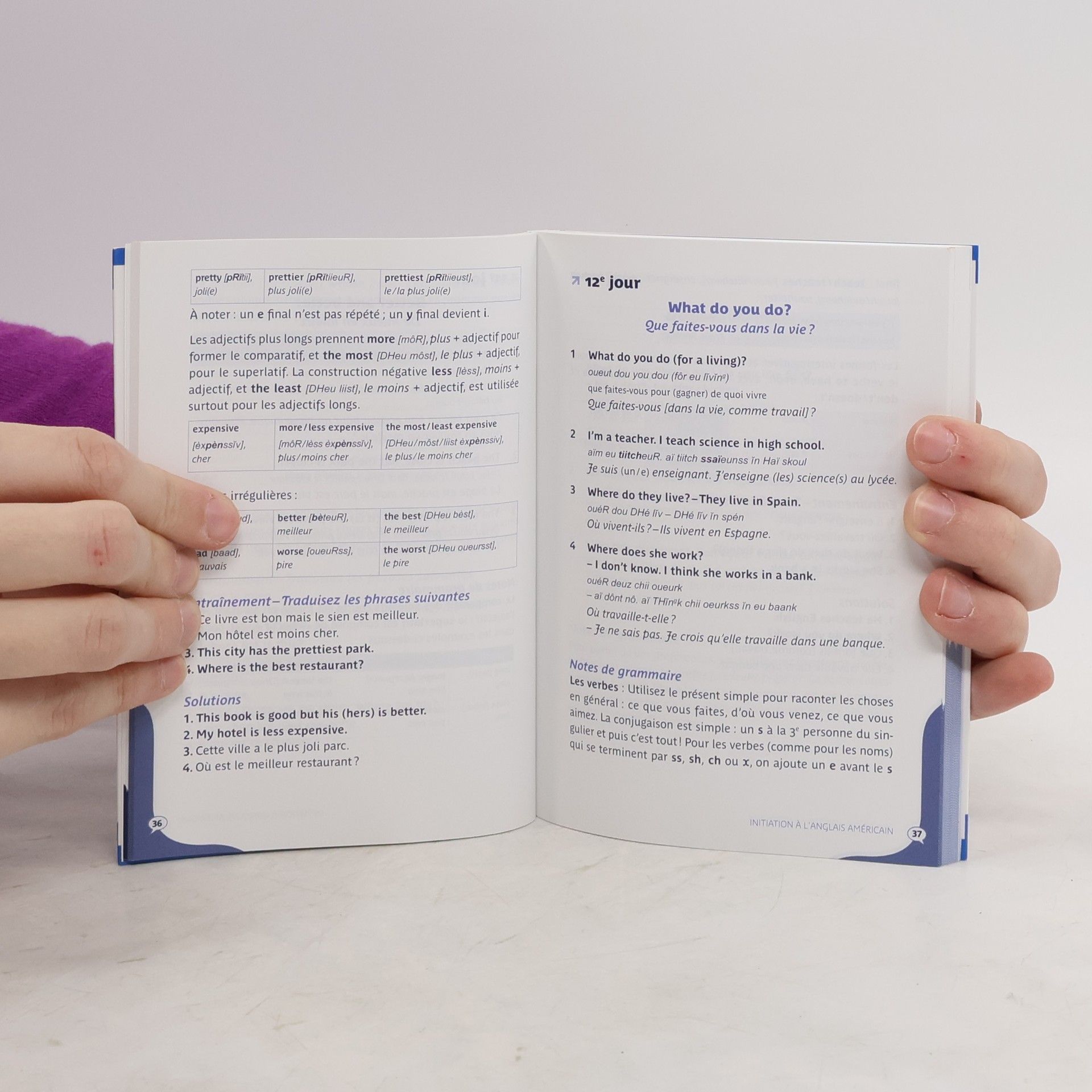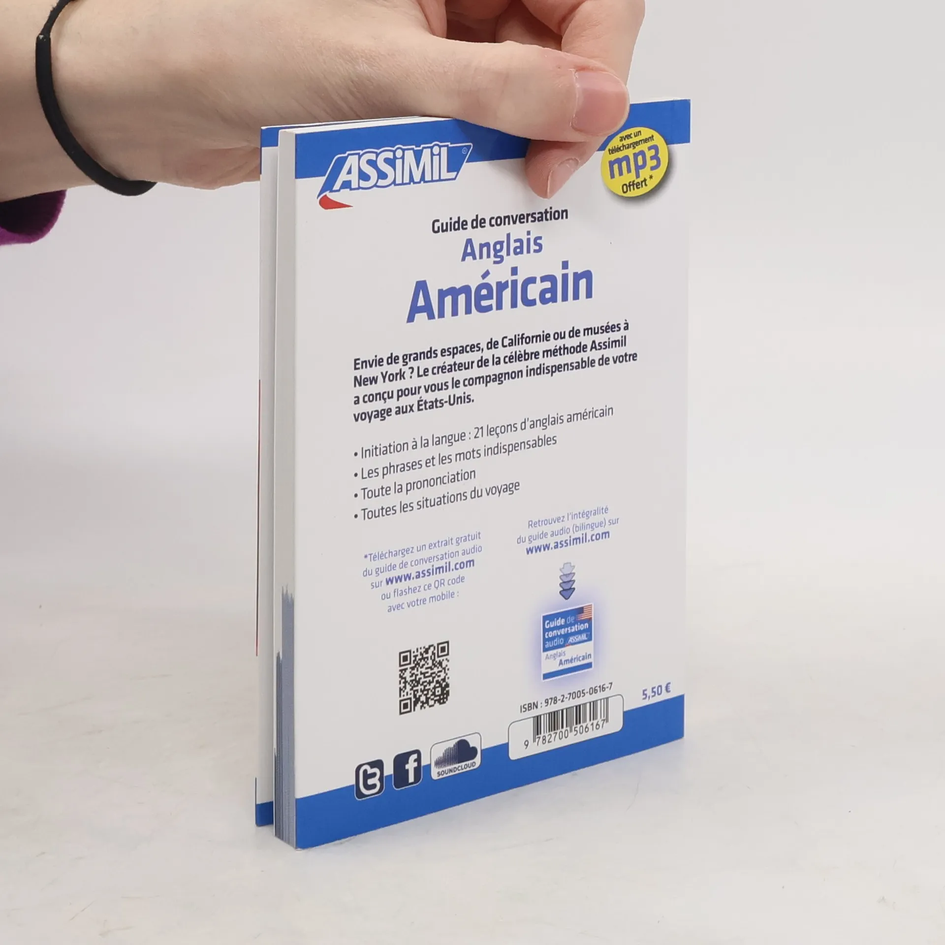 Source language : FRENCH Studied language : US ENGLISH Envie de grands espaces, de Californie ou de musées à New York ? Le créateur de la célèbre méthode Assimil a conçu pour vous le compagnon indispensable de votre voyage aux États-Unis.Initiation à la langue : 21 leçons d'anglais américainLes phrases et les mots indispensablesToute la prononciationToutes les situations du voyage A 160-page guide Are you yearning for the Great Outdoors, California or New York museums? The creator of the famous Assimil method has designed an indispensable companion when travelling to the US. Introduction to the 21 US English lessons Important words and phrases All pronunciation rules All travel situations