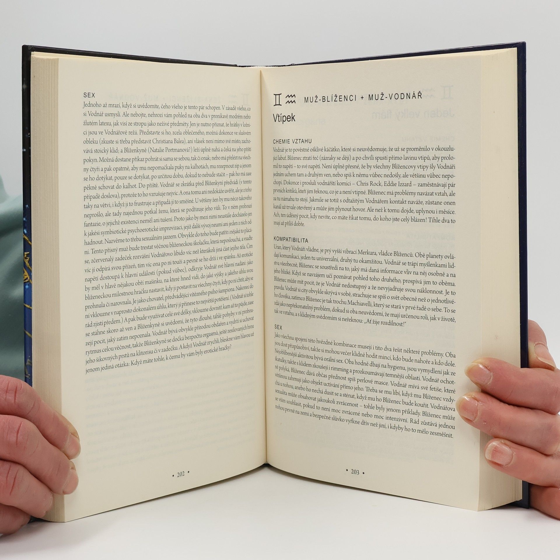 Astrologický rádce se věnuje lidským vztahům a sexu. Dvojice úspěšných amerických konzultantů nabízí vyčerpávající srovnání všech možností kombinací: každé astrologické znamení dávají do souvislosti se zástupcem ostatních znamení, a to jak pro páry heterosexuální, tak i homosexuální.