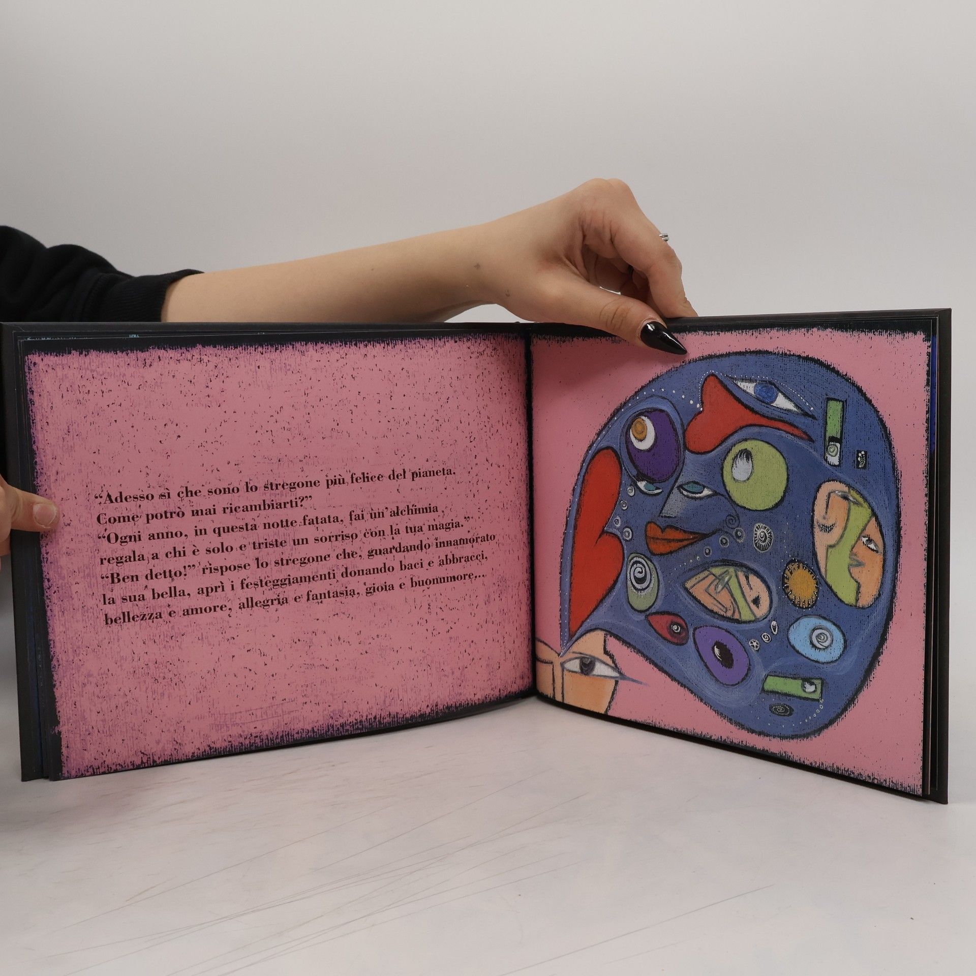 Questa dello stregone è la storia della notte più magica dell'anno! È la notte in cui l'amore danza nelle case e tra le stelle, è la notte dei desideri espressi da un mago solitario che non vuole più essere solitario, è la notte in cui un buffo Babbo Natale appare a cavallo di un cocco-dragone con un sacco pieno di capponi, capitoni e panettoni! Un albo scritto e illustrato da Caterina Arciprete in cui i disegni a tutta pagina riempiono lo spazio del libro ma lasciano campo libero alla fantasia surreale di ogni bambino che, nei personaggi poco usuali della piccola storia, può ritrovare l'antica ma mai banale metafora dell'amore condiviso. Età di da 3 anni.