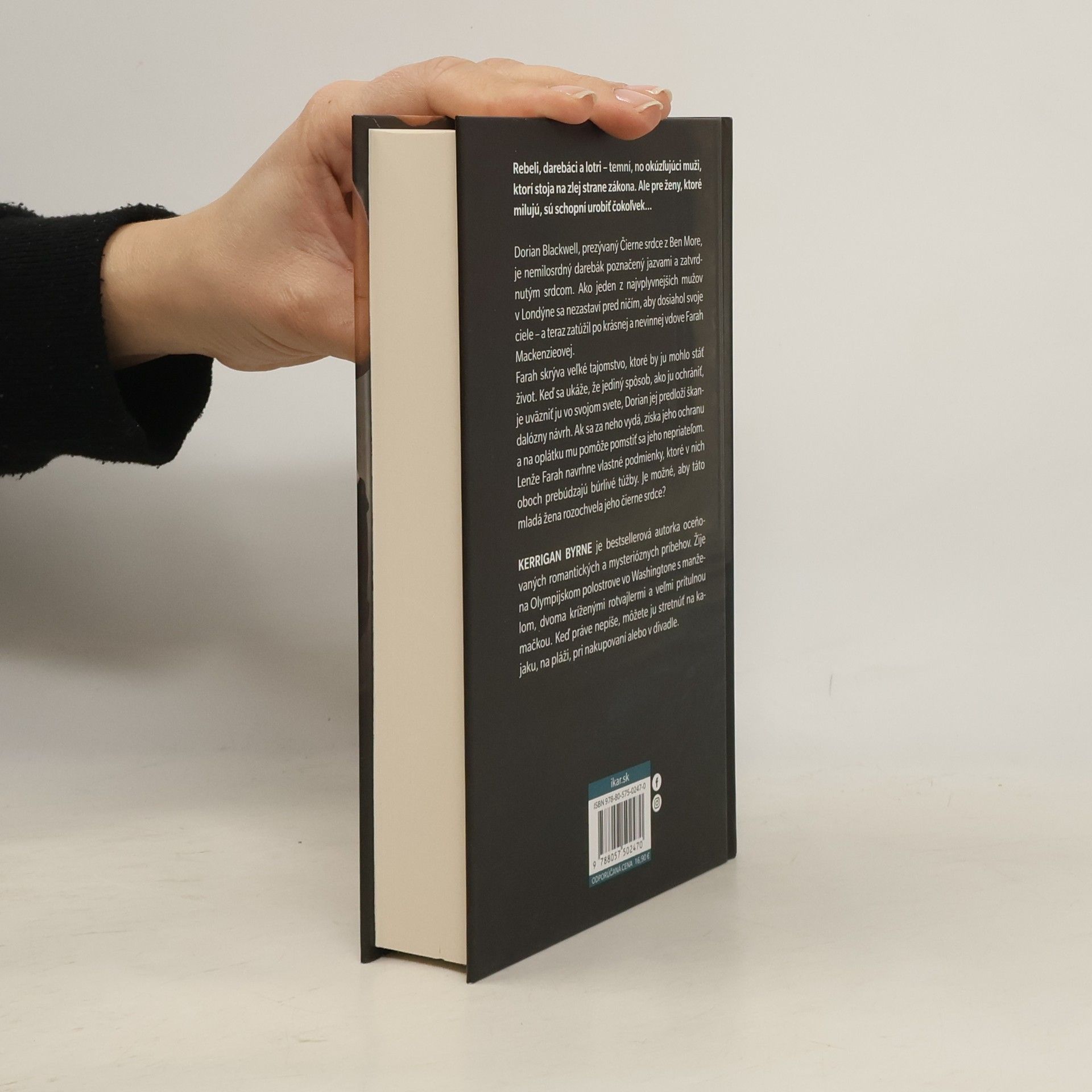Rebeli, darebáci a lotri – temní, no okúzľujúci muži, ktorí stoja na zlej strane zákona. Ale pre ženy, ktoré milujú, sú schopní urobiť čokoľvek... Dorian Blackwell, prezývaný Čierne srdce z Ben More, je nemilosrdný darebák, poznačený jazvami a zatvrdnutým srdcom. Ako jeden z najvplyvnejších mužov v Londýne sa nezastaví pred ničím, aby dosiahol svoje ciele – a teraz zatúžil po krásnej a nevinnej vdove Farah Mackenzieovej. Farah skrýva veľké tajomstvo, ktoré by ju mohlo stáť život. Keď sa ukáže, že jediný spôsob, ako ju ochrániť, je uväzniť ju vo svojom svete, Dorian jej predloží škandalózny návrh. Ak sa za neho vydá, získa jeho ochranu a na oplátku mu pomôže pomstiť sa jeho nepriateľom. Lenže Farah navrhne vlastné podmienky, ktoré v nich oboch prebúdzajú búrlivé túžby. Je možné, aby táto mladá žena rozochvela jeho čierne srdce?
