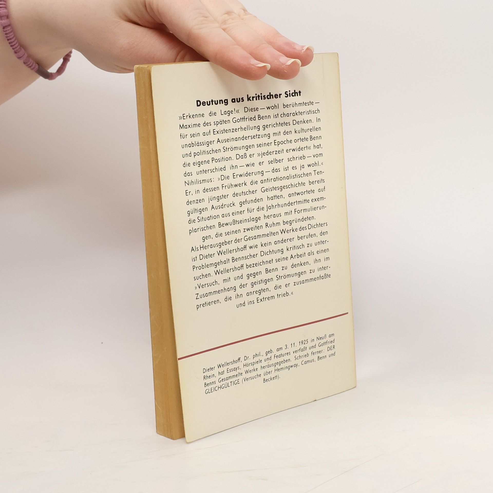 Gottfried Benn. Phänotyp dieser Stunde, Dieter Wellershoff