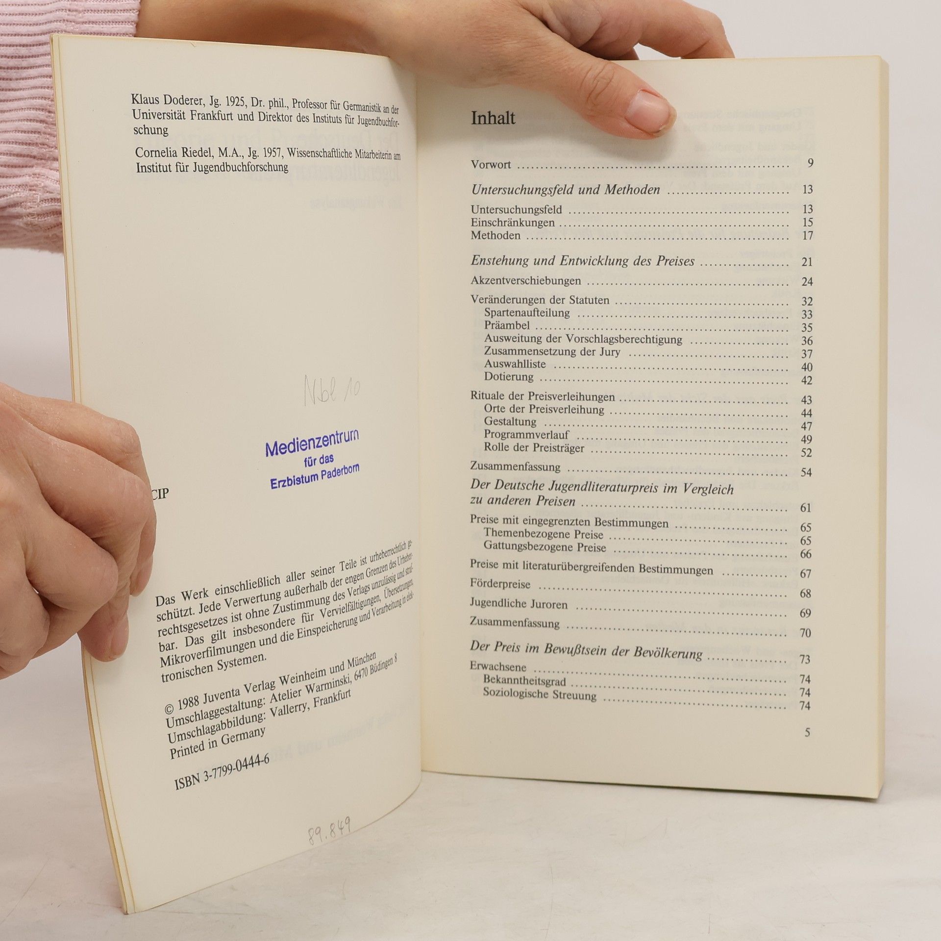 Jugendliteratur, Theorie und Praxis: Der deutsche Jugendliteraturpreis, Klaus Doderer, Cornelia Riedel